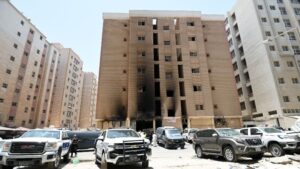 Το εξαώροφο κτίριο χρησιμοποιείτο για τη στέγαση 196 εργατών, είπε ένας αξιωματούχος της εταιρείας που τους απασχολούσε, κατά τη διάρκεια της επίσκεψης του υπουργού Εσωτερικών, σεΐχη Φαχντ αλ-Γιουσέφ, ο οποίος έσπευσε στο πλευρό των θυμάτων.