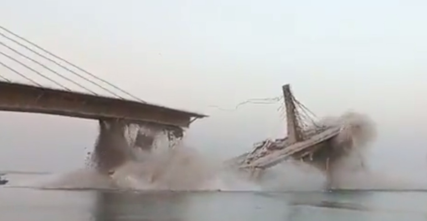 In the Indian state of Bihar, a four-lane bridge under construction over the Ganges River collapsed for the second time in two years. About $208 million was allocated for its construction. pic.twitter.com/2usPXeqrKd