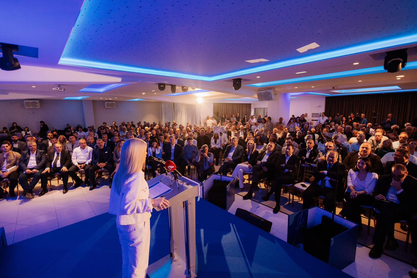 Κατά τη διάρκεια της ομιλίας της, η Πρόεδρος του Δημοκρατικού Συναγερμού ανέλυσε τα πολιτικά θεμέλια που συνθέτουν την παράταξη, υπογραμμίζοντας ότι ο Δημοκρατικός Συναγερμός είναι η πρωταγωνιστική δύναμη στον πολιτικό χάρτη του τόπου, με καθοριστικό ρόλο και λόγο.