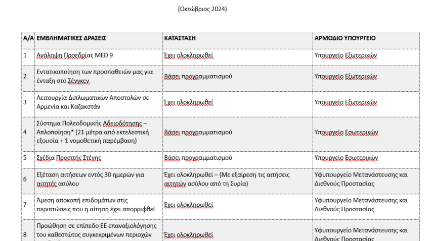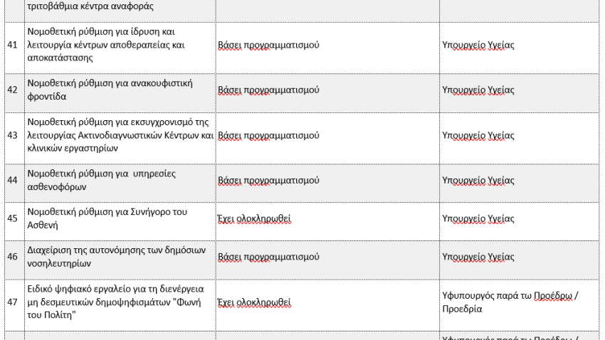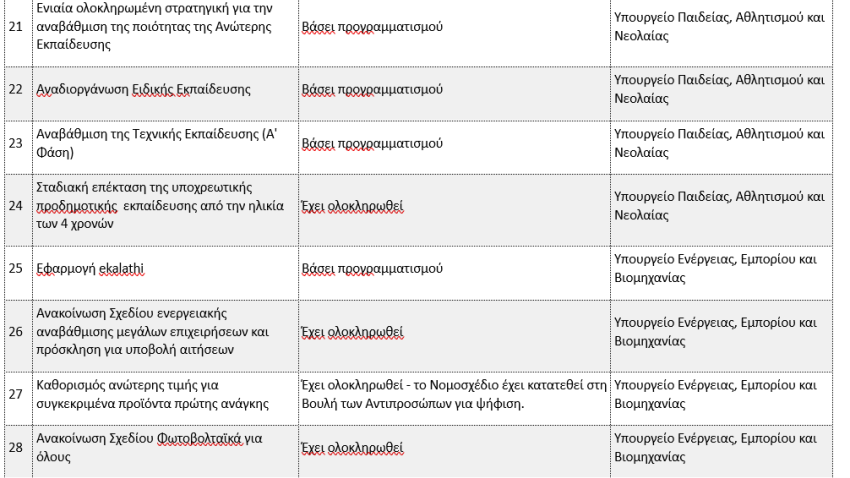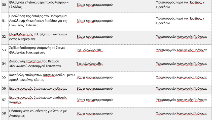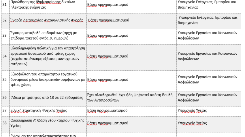 Ερωτηθείσα είπε ότι «όταν ξεκίνησε αυτή η διαδικασία τον Ιανουάριο και τέθηκαν μαζί με τα Υπουργεία οι δράσεις, οι οποίες κρίθηκαν ως εμβληματικές δράσεις για το δεύτερο έτος διακυβέρνησης, τέθηκαν κάποια χρονοδιαγράμματα.