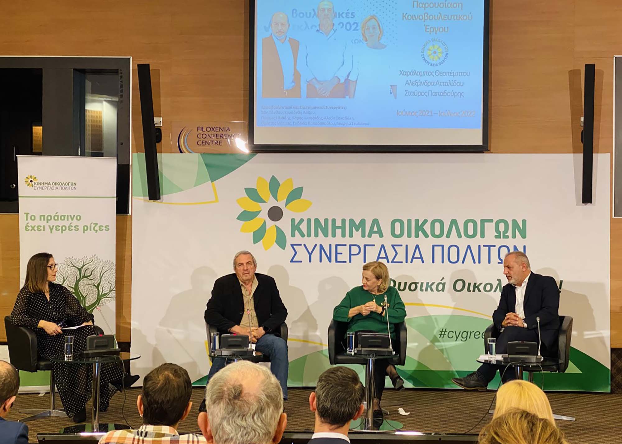 Η παρουσίαση του κοινοβουλευτικού έργου των τριών βουλευτών του Κινήματος πραγματοποιήθηκε το βράδυ της Τρίτης στο Συνεδριακό Κέντρο Φιλοξενία, όπου οι παρευρισκόμενοι είχαν την ευκαιρία να παρακολουθήσουν αναλυτικά τα πεπραγμένα των Οικολόγων μέσα στη Βουλή των Αντιπροσώπων (κατάθεση προτάσεων νόμου, εγγραφή θεμάτων, κατάθεση ερωτήσεων κλπ.) από τον Ιούνιο του 2021 μέχρι τον Ιούλιο του 2022, όπως επίσης και τις διεθνείς παρεμβάσεις του Κινήματος, μέσω της Βουλής των Αντιπροσώπων.