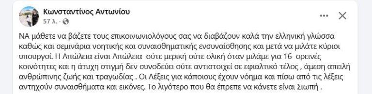 Η τοποθέτησή του πυροδότησε κύμα αντιδράσεων στα μέσα κοινωνικής δικτύωσης, με τους χρήστες να ψέγουν τη συμπεριφορά του κυβερνητικού αξιωματούχου. Ανάμεσα σε αυτούς και ο Μιχάλης Σοφοκλέους.