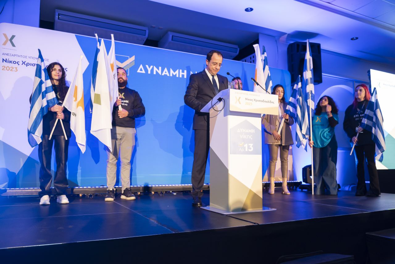 Σε μια κατάμεστη αίθουσα, ο κ. Χριστοδουλίδης διακήρυξε ότι ανοίγουμε μια νέα σελίδα στην ιστορία του τόπου μας, και πρόταξε την πρότασή του για σύσταση Κυβέρνησης ευρείας κοινωνικής αποδοχής στην οποία περιλαμβάνονται όλοι.