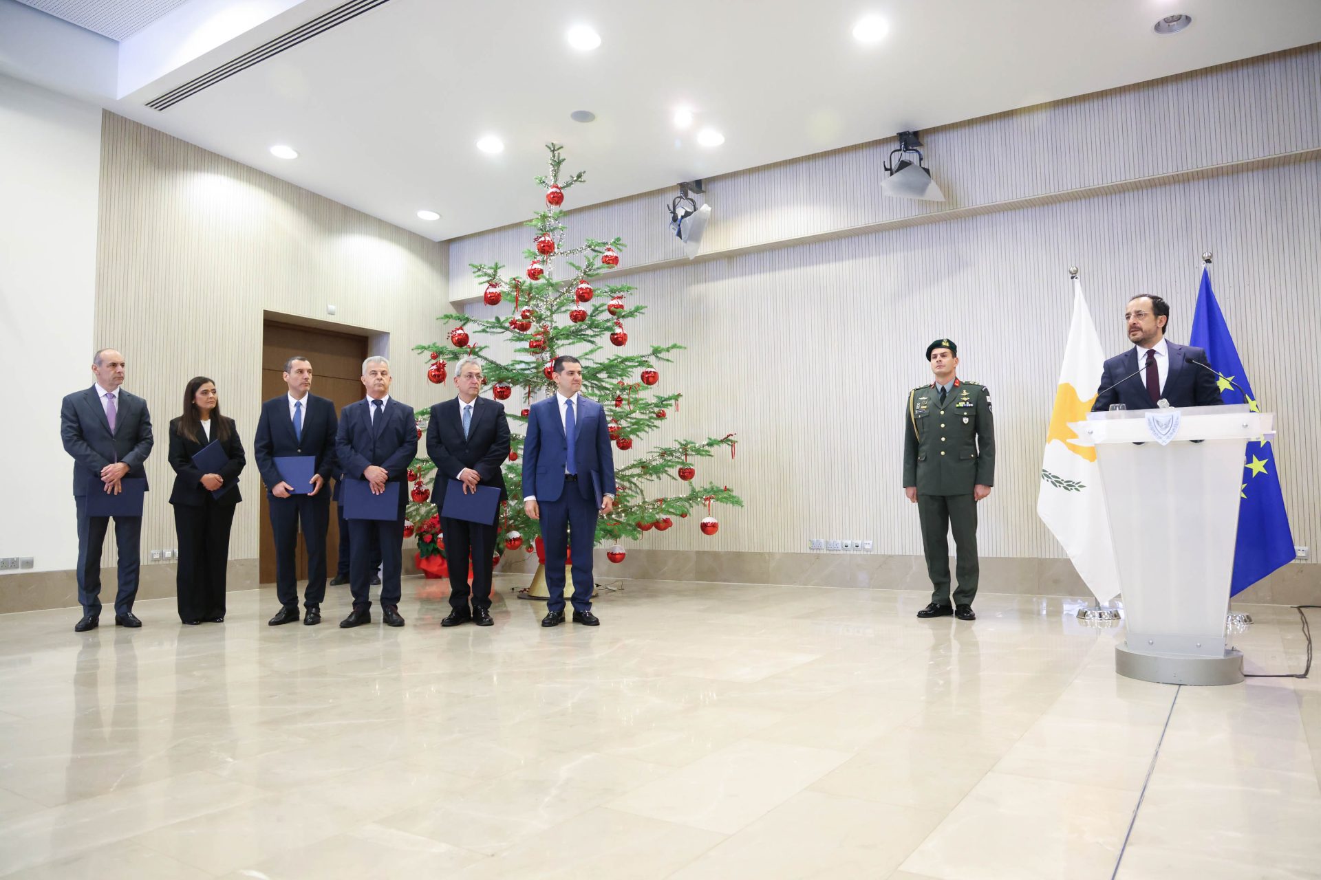 Στην αντιφώνηση από τον νέο Υπουργό Ενέργειας Μιχάλη Δαμιανό, τα νέα μέλη του Υπουργικού Συμβουλίου υποσχέθηκαν να υπηρετήσουν με ακεραιότητα τον κυπριακό λαό.
