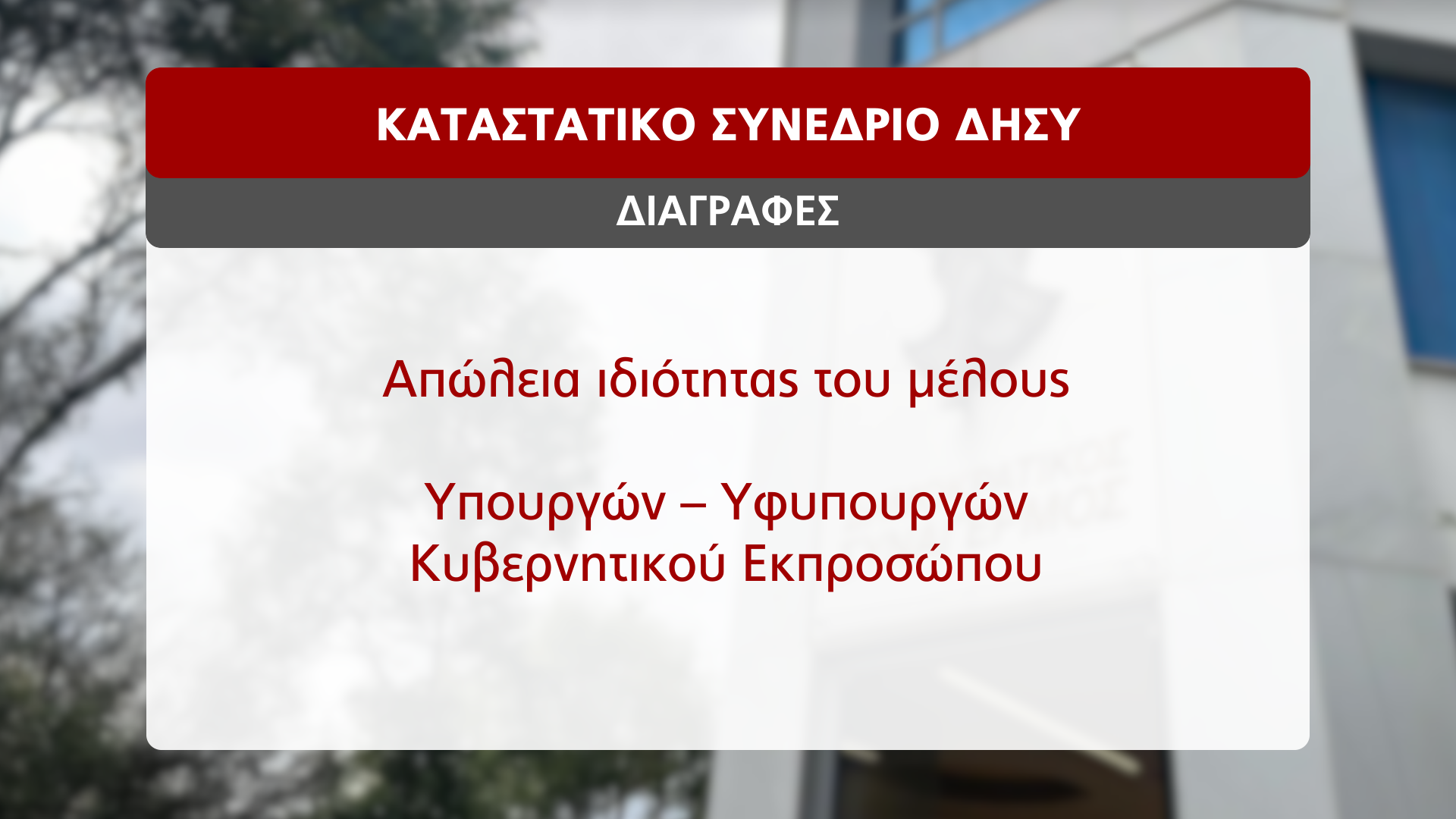 Η εισήγηση που θα κατατεθεί το Σάββατο, αφορά την απώλεια ιδιότητας μέλους σε Υπουργούς, Υφυπουργούς και τον Κυβερνητικό Εκπρόσωπο.