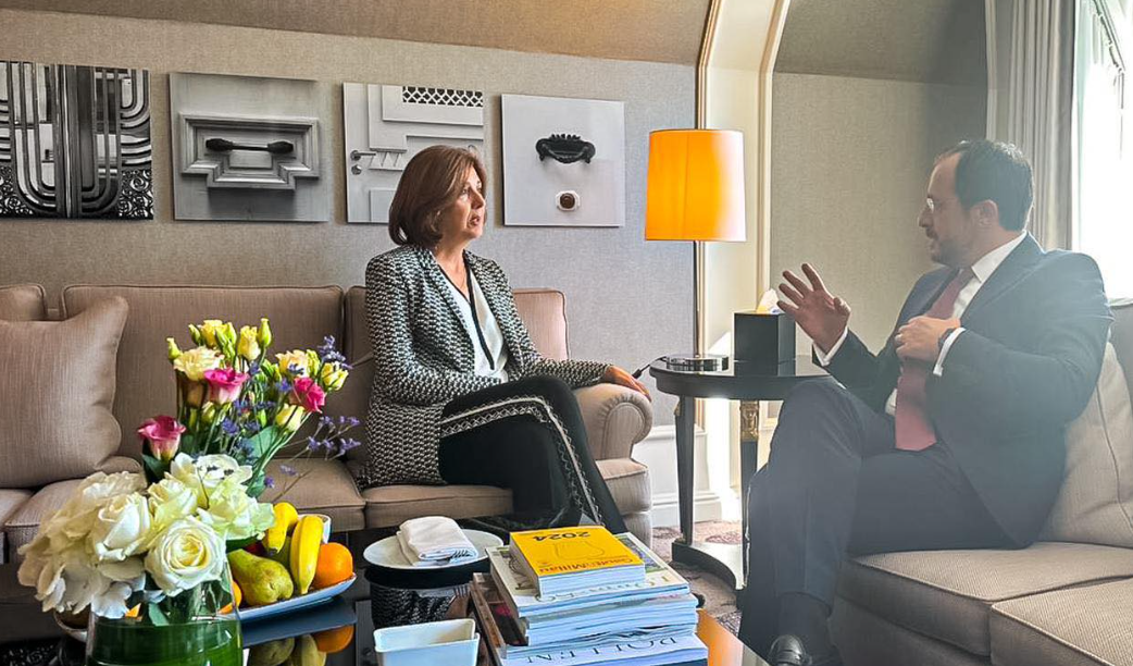 Ο Πρόεδρος της Δημοκρατίας κ. Νίκος Χριστοδουλίδης είχε σήμερα το πρωί, συνάντηση, με την προσωπική απεσταλμένη του ΓΓ των ΗΕ για το Κυπριακό κα Μαρία Άνχελα Ολγκίν.