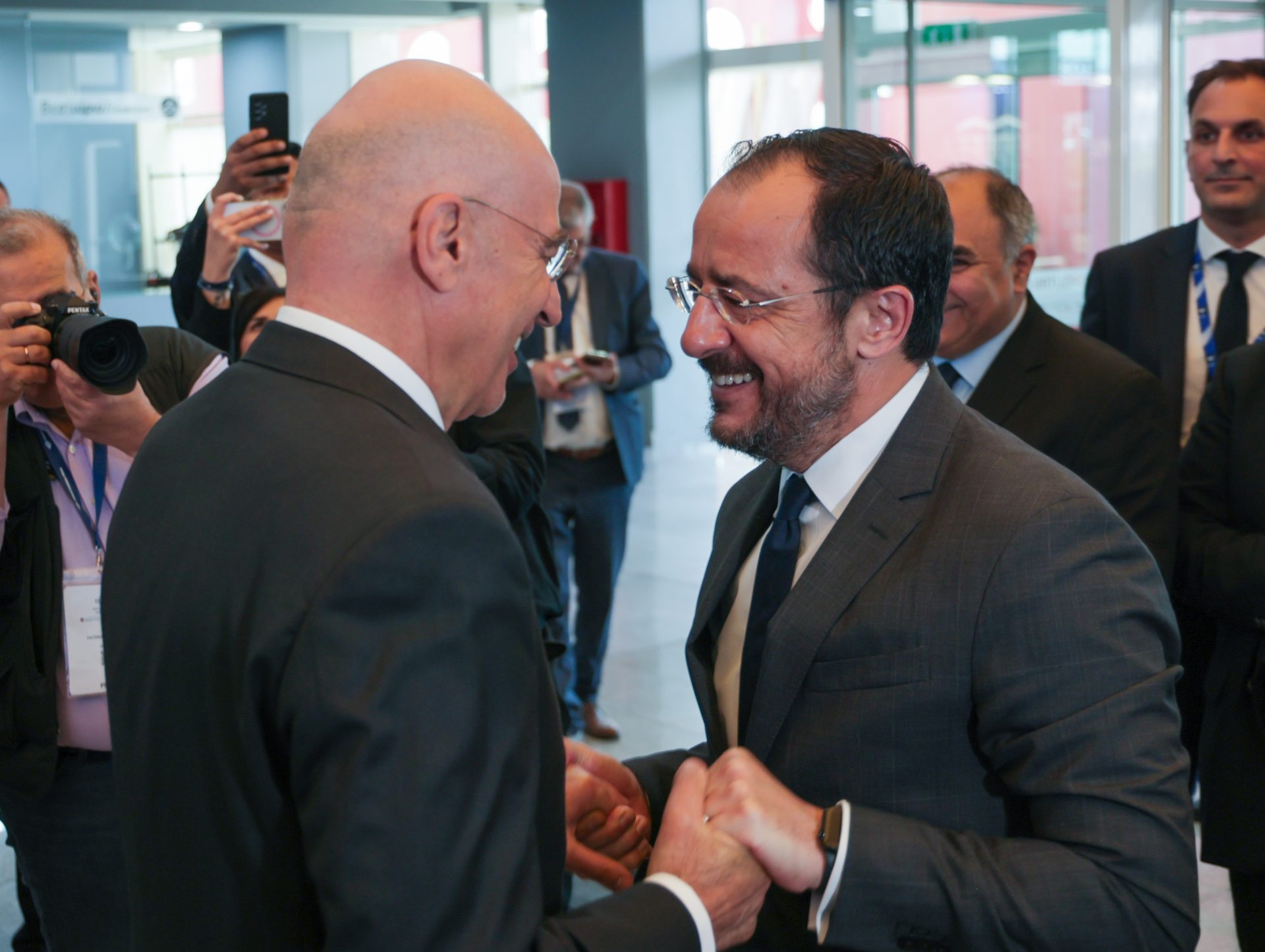 Κατά την άφιξή του στον εκθεσιακό χώρο ο κ. Χριστοδουλίδης συναντήθηκε με τον Υπουργό Εθνικής Άμυνας της Ελληνικής Δημοκρατίας κ. Νίκο Δένδια, με τον οποίο αντάλλαξε απόψεις επί θεμάτων που αφορούν την εθνική άμυνα και την ασφάλεια. Ο Πρόεδρος της Δημοκρατίας και ο Υπουργός Εθνικής Άμυνας της Ελληνικής Δημοκρατίας επιβεβαίωσαν εκ νέου τη σημασία της συνεργασίας στον τομέα της άμυνας μεταξύ της Κύπρου και της Ελλάδας.