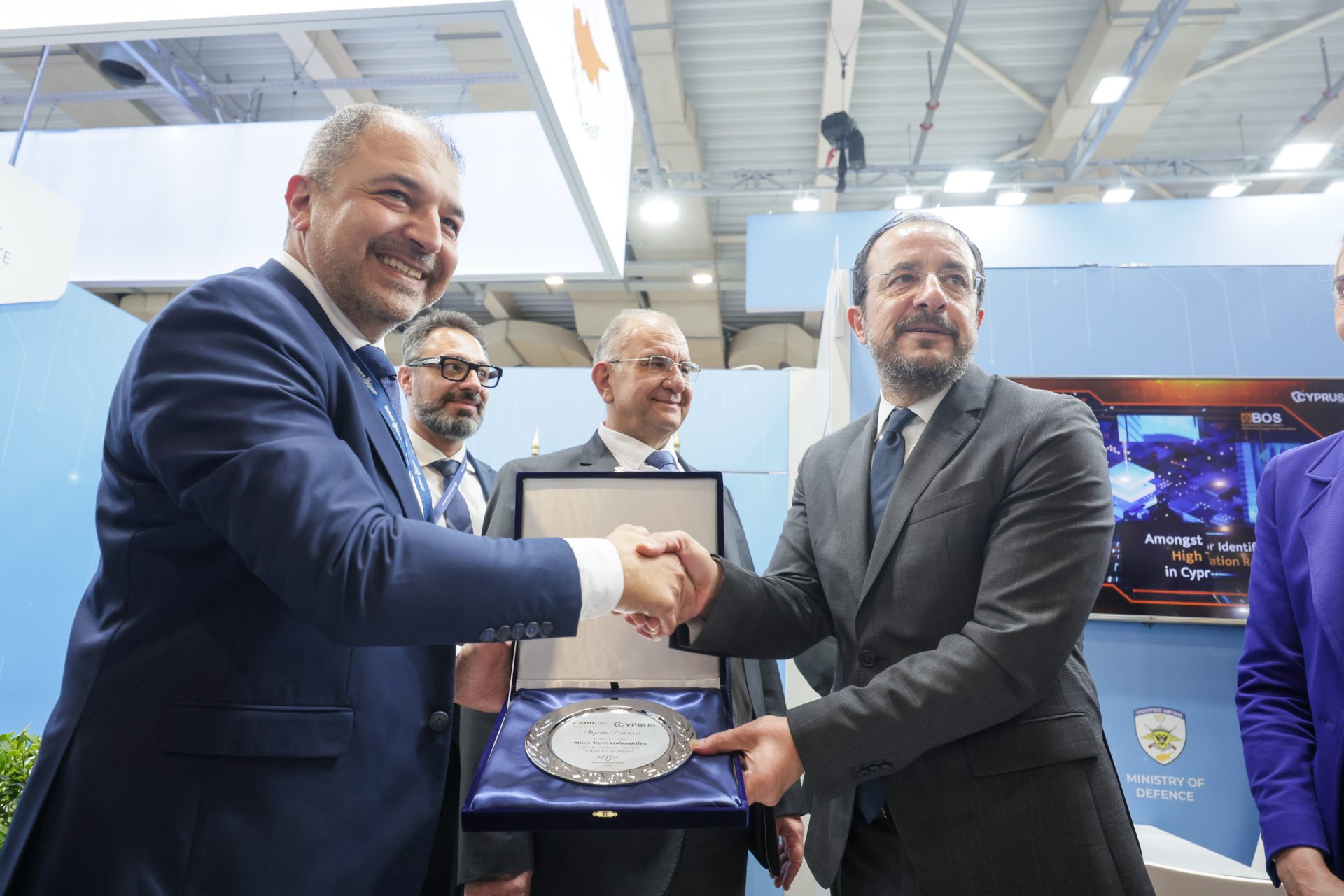 Μετά τη συνάντηση που είχε με τον Υπουργό Εθνικής Άμυνας της Ελληνικής Δημοκρατίας, ο Πρόεδρος της Δημοκρατίας επισκέφθηκε το κυπριακό περίπτερο, το οποίο διοργανώνεται από τον Κυπριακό Σύνδεσμο Επιχειρήσεων Έρευνας και Καινοτομίας και το Κυπριακό Εμπορικό και Βιομηχανικό Επιμελητήριο, υπό την αιγίδα και στήριξη του Υπουργείου Άμυνας της Κυπριακής Δημοκρατίας.
