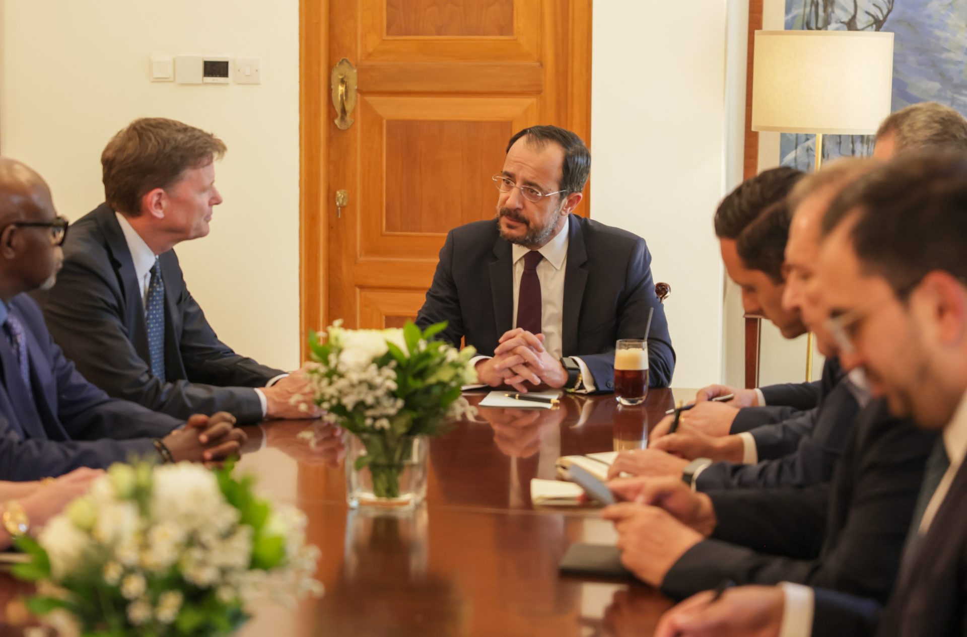 Ο Πρόεδρος της Δημοκρατίας κ. Νίκος Χριστοδουλίδης δέχθηκε σήμερα, το απόγευμα στο Προεδρικό Μέγαρο, τον Ειδικό Αντιπρόσωπο του ΓΓ των ΗΕ στην Κύπρο κ. Κόλιν Στιούαρτ.