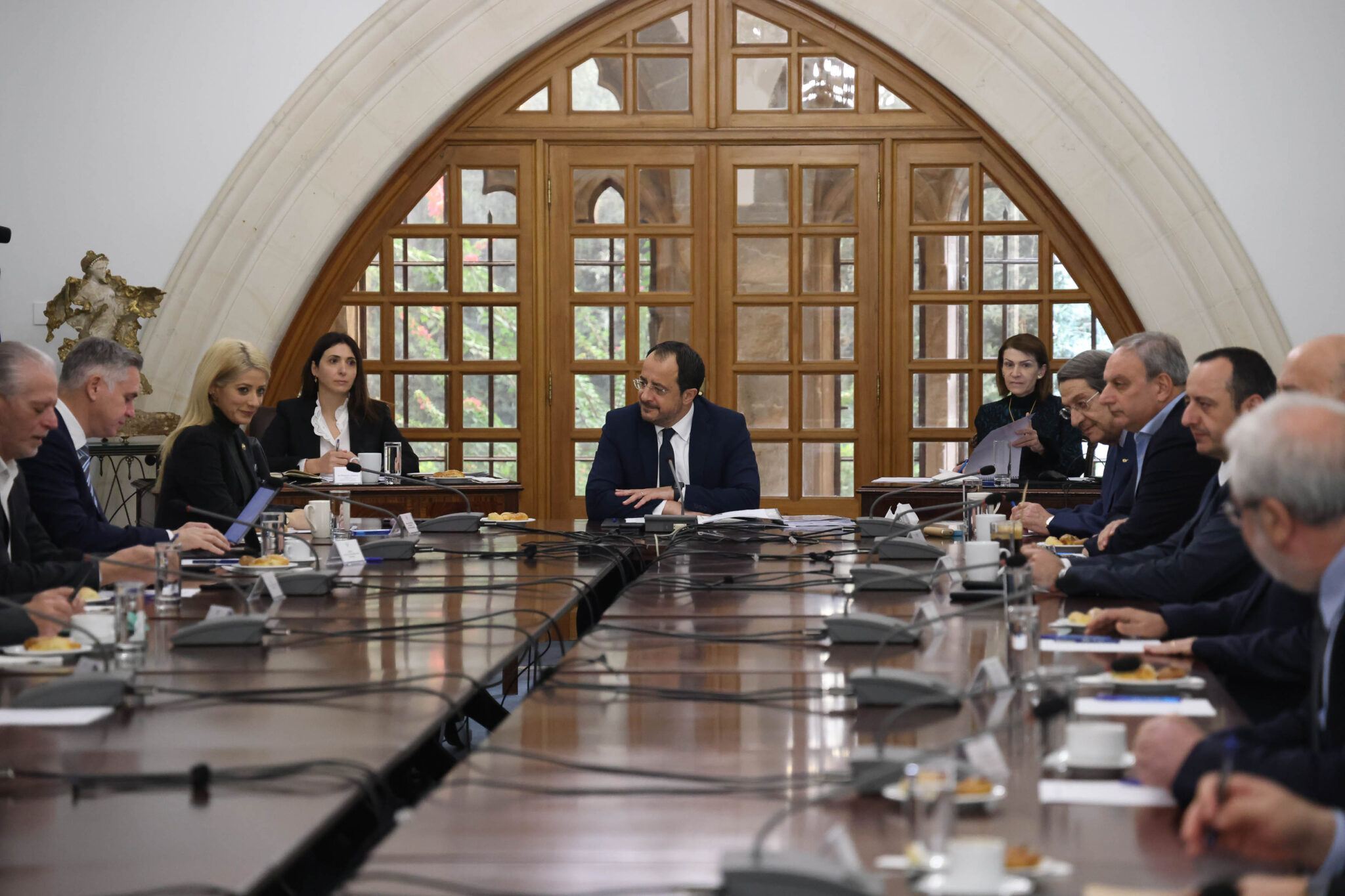 Τη στρατηγική και τα επόμενα βήματα στο Κυπριακό μετά το διορισμό της Μαρία Άνχελα Χολγκίν Κουεγιάρ ως νέας Προσωπικής Απεσταλμένης του Γενικού Γραμματέα των Ηνωμένων Εθνών για την Κύπρο, συζήτησαν οι πολιτικοί αρχηγοί με τον Πρόεδρο Χριστοδουλίδη, στη συνεδρίαση του Εθνικού Συμβουλίου.