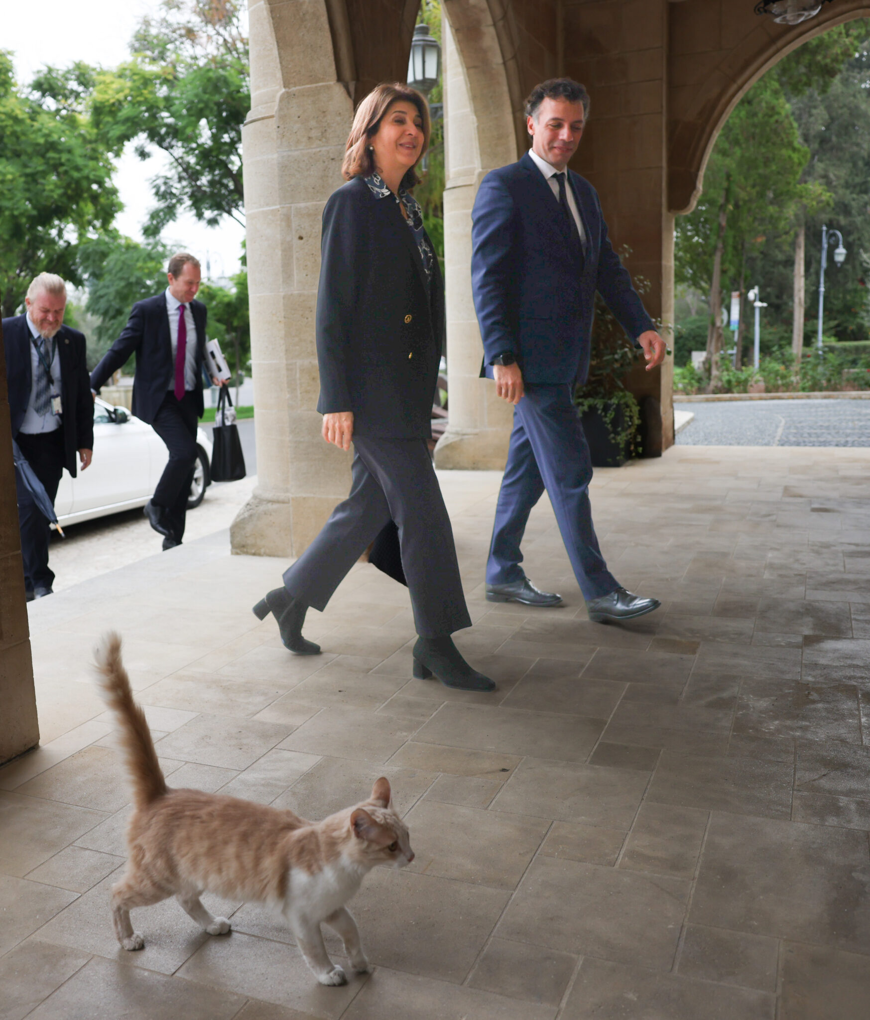 “Είμαι πολύ χαρούμενη που επιστρέφω στο νησί. Είχα μια πολύ παραγωγική συνάντηση με τον κ. Χριστοδουλίδη. Νομίζω ότι μας ενέπνευσε αυτή η υπέροχη συνάντηση με τους νέους στο Αμμάν. Πιστεύω λοιπόν ότι μπορούμε να προχωρήσουμε με θετικό τρόπο”, δήλωσε.