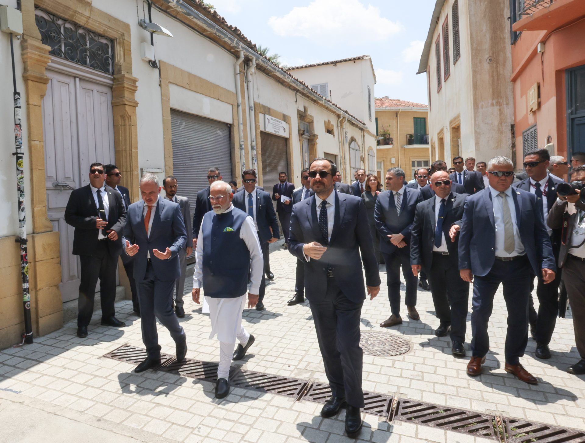 Κατά τη διάρκεια επίσκεψης του κ. Μόντι στο Δημαρχείο Λευκωσίας, στο πλαίσιο της επίσημης επίσκεψής του στην Κύπρο, κατόπιν πρόσκλησης του Προέδρου της Κυπριακής Δημοκρατίας, Νίκου Χριστοδουλίδη, είχε την ευκαιρία να παρατηρήσει την κατεχόμενη Λευκωσία και τη γραμμή αντιπαράταξης από ψηλά, ενώ ακολούθως ο Δήμαρχος Λευκωσίας μαζί με τον Ινδό Πρωθυπουργό και τον Πρόεδρο της Δημοκρατίας περιηγήθηκαν κατά μήκος της πράσινης γραμμής.