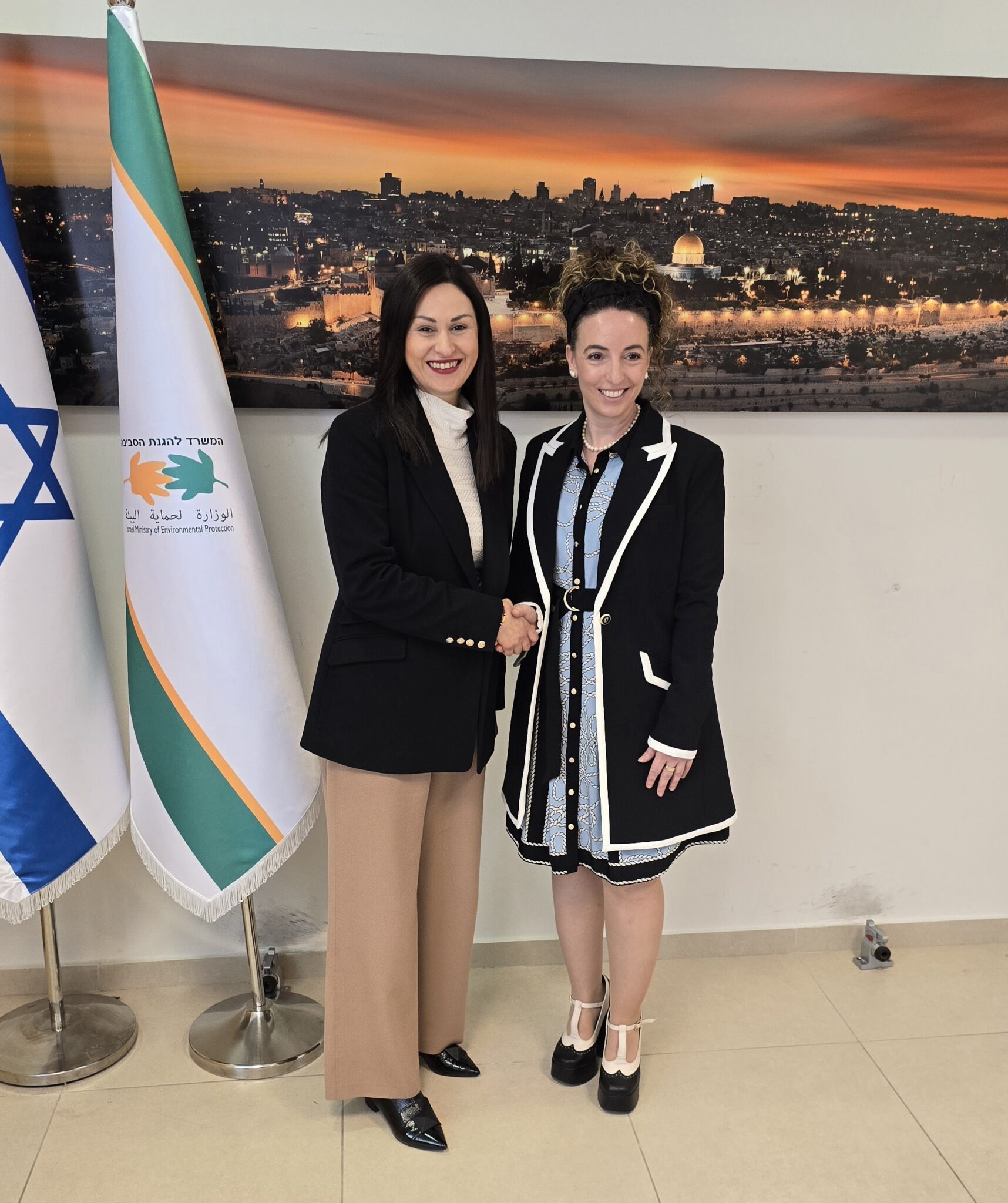 Ακολούθως, η Υπουργός συναντήθηκε με την Υπουργό Προστασίας του Περιβάλλοντος, κα Idit Silman, με την οποία αντάλλαξαν απόψεις για πολιτικές που αφορούν τη διαχείριση αποβλήτων και την εφαρμογή των αρχών της κυκλικής οικονομίας, τις πράσινες υποδομές, την προστασία και διαχείριση προστατευόμενων περιοχών και την προώθηση της περιφερειακής πρωτοβουλίας για κλιματική δράση, με στόχο τη διερεύνηση συνεργασίας και την ανταλλαγή καλών πρακτικών σε σημαντικούς τομείς περιβαλλοντικής διακυβέρνησης.