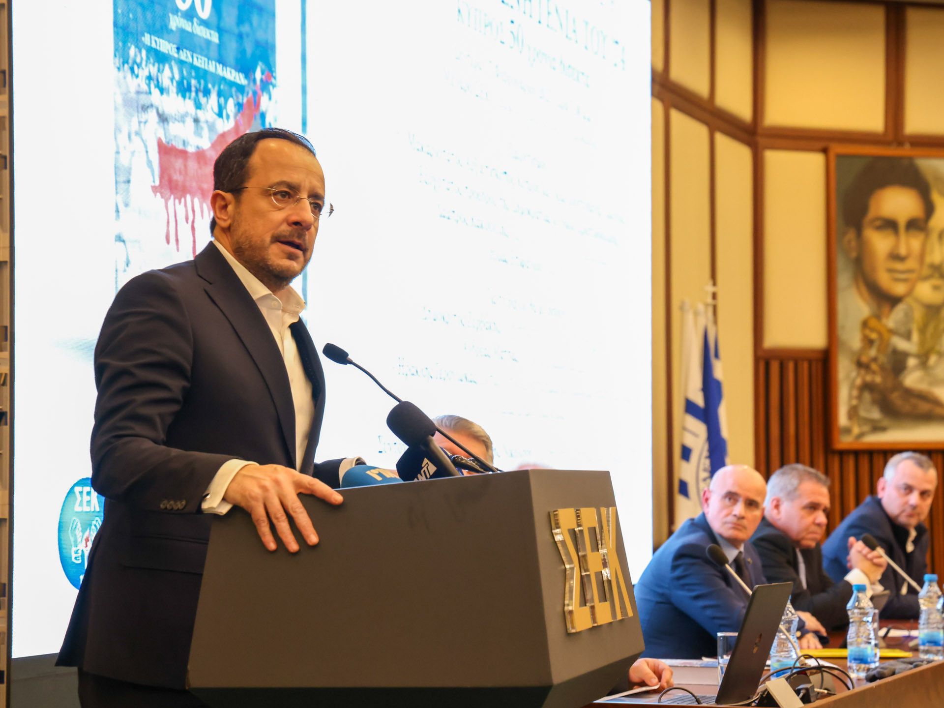 «Η Κύπρος δεν κείται μακράν όσο βρίσκεται στις καρδιές των αδελφών μας Ελλήνων, και βρίσκεται», δήλωσε το βράδυ της Δευτέρας ο Πρόεδρος της Κυπριακής Δημοκρατίας, Νίκος Χριστοδουλίδης, σε χαιρετισμό του στην παρουσίαση του βιβλίου του Αυγουστίνου (Ντίνου) Αυγουστή με τίτλο «Η προδομένη γενιά του ‘74 – Κύπρος 50 χρόνια δίσεκτα. Η Κύπρος δεν κείται μακράν», που διεξήχθη στο Μέγαρο της ΣΕΚ στη Λευκωσία.