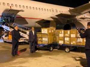 Το Υπουργείο Μεταφορών, Επικοινωνιών και Έργων είχε νωρίτερα σήμερα ανακοινώσει πως στο πλαίσιο πρόληψης και αντιμετώπισης της πανδημίας του κορωνοϊού και κατόπιν συντονισμένων ενεργειών με το Υπουργείο Υγείας και την Πρεσβεία της Κύπρου στη Λαϊκή Δημοκρατία της Κίνας έχει διευθετήσει τη μεταφορά ιατρικού εξοπλισμού και αναλώσιμων από την Κίνα. Το ιατρικό υλικό αναμενόταν να φτάσει σήμερα, Τετάρτη, γύρω στις 13.30, στο αεροδρόμιο Λάρνακας με αεροπλάνο που έχει ναυλώσει ειδικά το Υπουργείο Μεταφορών, Επικοινωνιών και Έργων για το σκοπό αυτό από το αεροδρόμιο Τιανζίν της Κίνας. Το αεροσκάφος μεταφέρει 36 τόνους ιατρικού εξοπλισμού που συμπεριλαμβάνει, μεταξύ άλλων, προστατευτικές στολές, καλύμματα παπουτσιών, χειρουργικές στολές μονής χρήσης και προστατευτικές μάσκες.