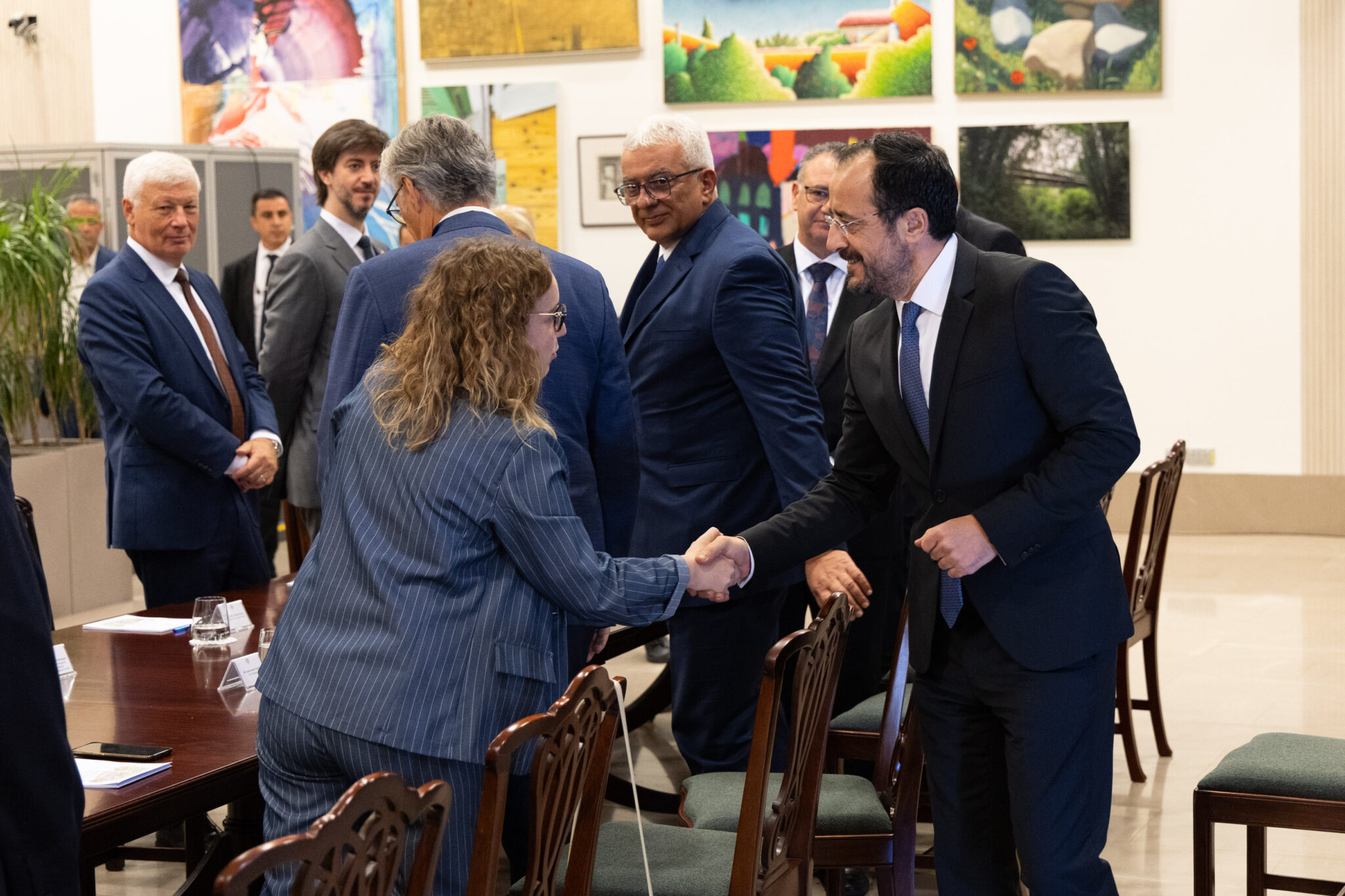 Ο Πρόεδρος της Δημοκρατίας κ. Νίκος Χριστοδουλίδης δέχθηκε σήμερα, στο Προεδρικό Μέγαρο, τους Προέδρους των Κοινοβουλίων μικρών κρατών της Ευρώπης που συμμετέχουν στη 18η Διάσκεψη τους στην Κύπρο, τους οποίους συνόδευε η Πρόεδρος της Βουλής των Αντιπροσώπων κα Αννίτα Δημητρίου.