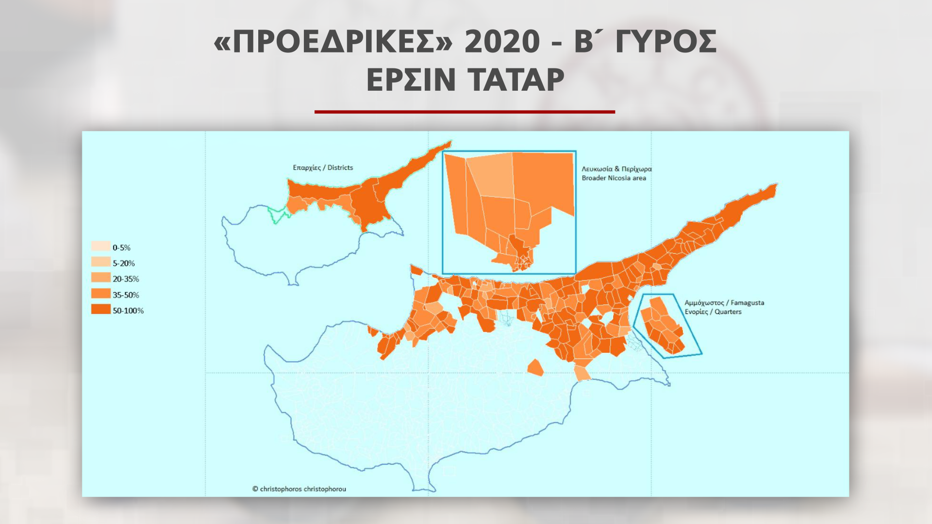 Το έντονο πορτοκαλί χρώμα είναι οι ψηφοφόροι του Ερσίν Τατάρ, με τον χάρτη να ταυτίζεται με τον χάρτη που απεικονίζει την αύξηση των εποίκων. Αυτό δείχνει ότι οι έποικοι καθόρισαν το αποτέλεσμα.