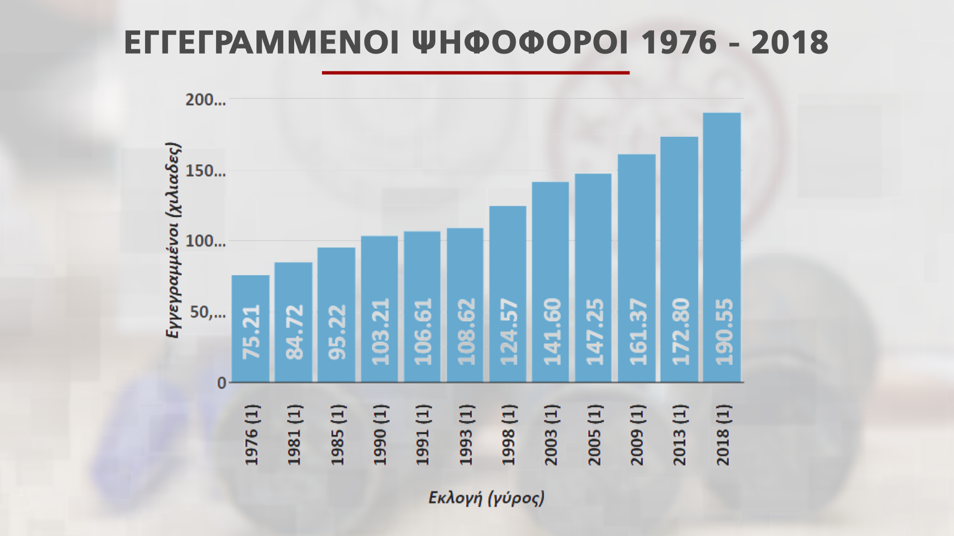 Και καταγράφει τον αριθμό των ψηφοφόρων πώς εξελίχθηκε από το 1976 μέχρι το 2018 αλλά και το 2025.