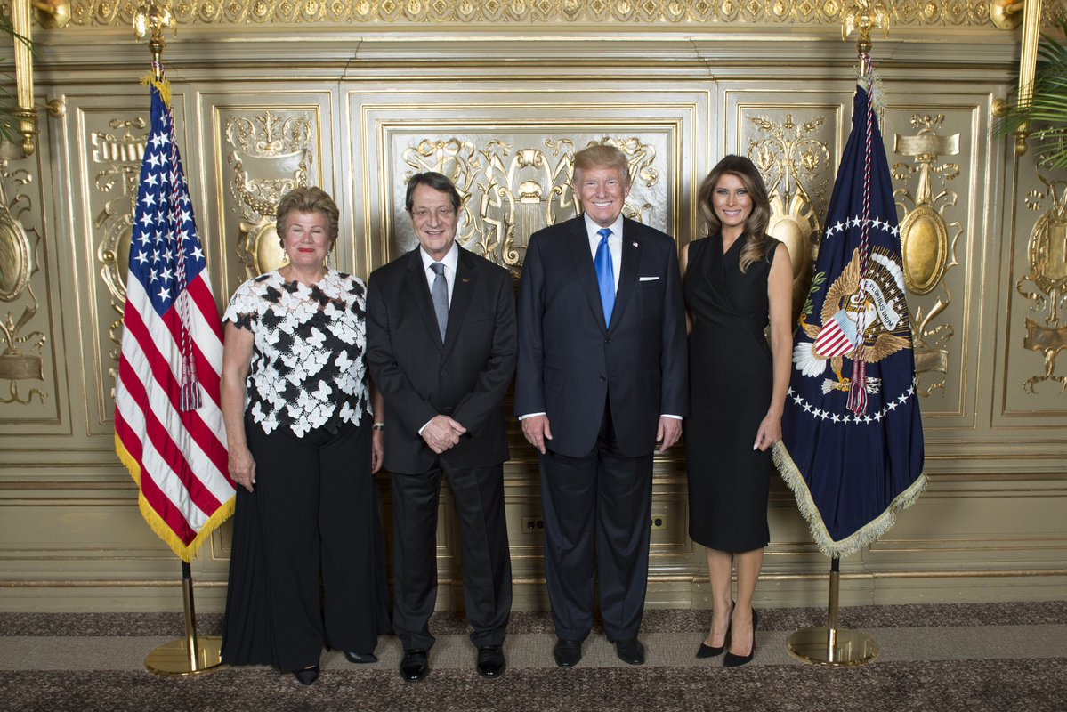 Ο Πρόεδρος Αναστασιάδης και η σύζυγος του Άντρη Αναστασιάδη, φωτογραφήθηκαν με τον Αμερικανό Πρόεδρο Ντόναλντ Τραμπ και τη σύζυγο του Μελάνια Τραμπ.