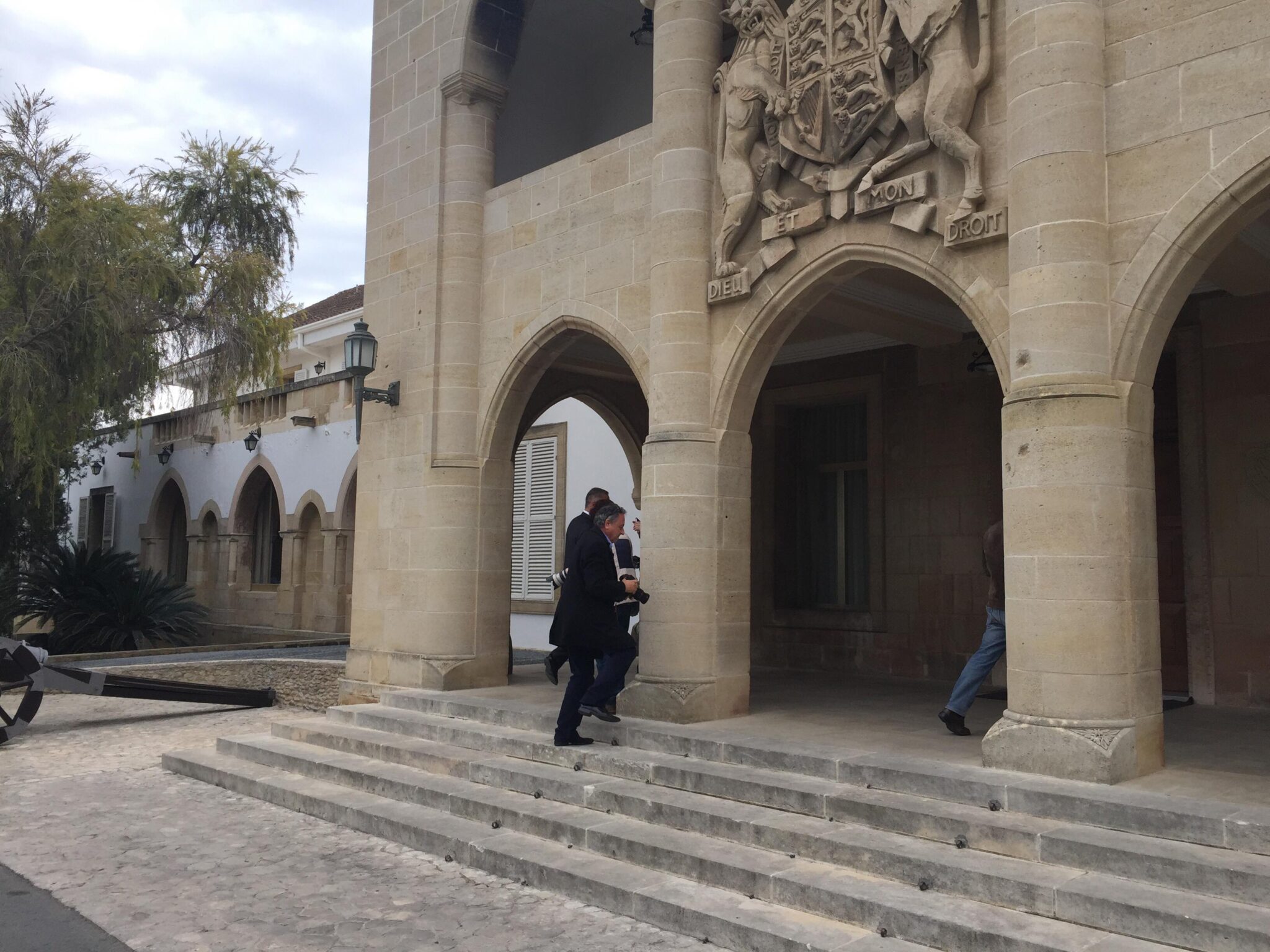 Με χαμόγελο, πέρασαν την κεντρική είσοδο του Προεδρικού Μεγάρου ο Κυβερνητικός Εκπρόσωπος Προδρομος Προδρόμου και ο Διευθυντής του Γραφείου του Προέδρου της Δημοκρατίας Πέτρος Δημητρίου.
