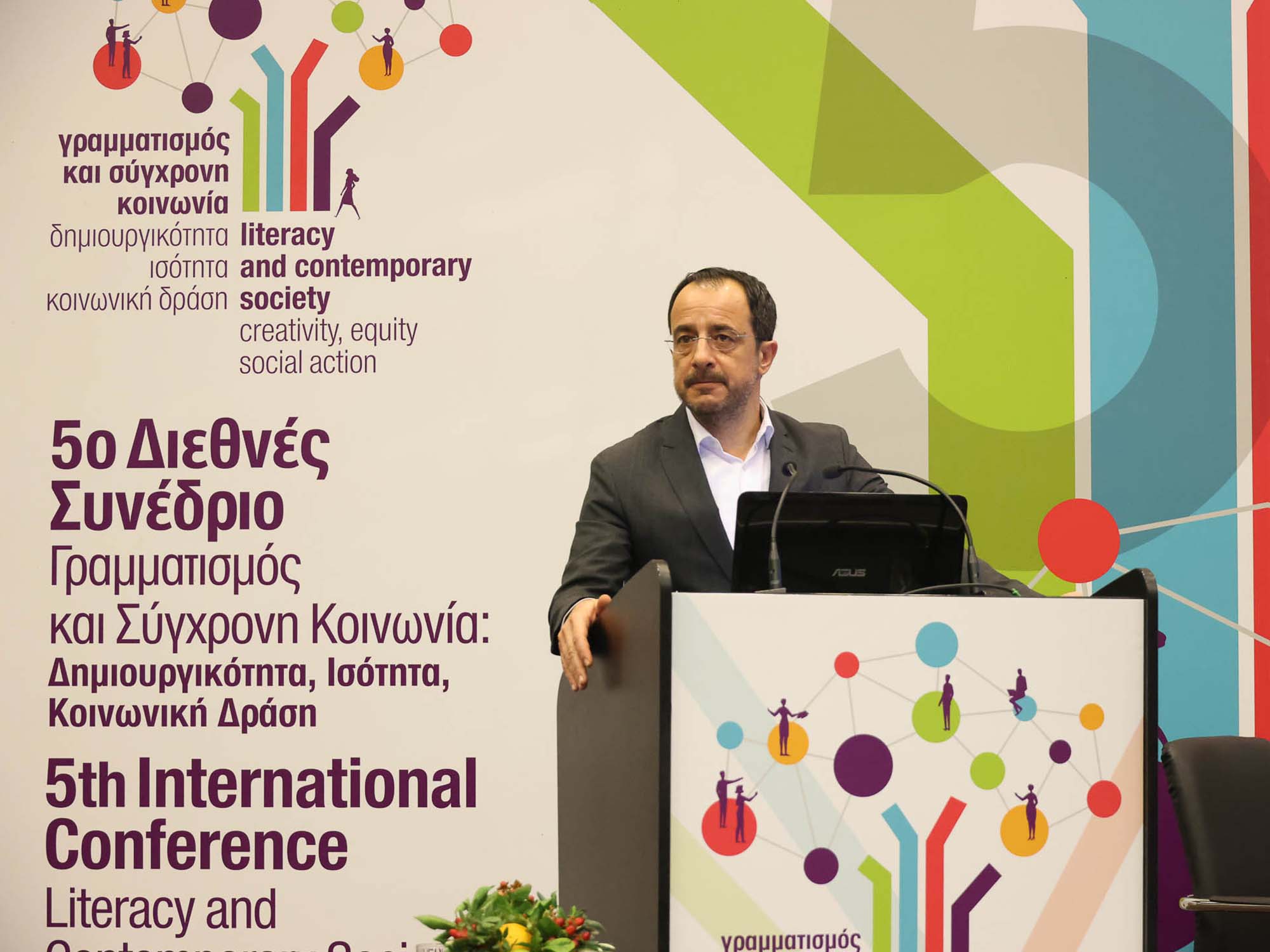 Τα αποτελέσματα του 5ου διεθνούς συνεδρίου για τον γραμματισμό, «θα αποτελέσουν οδηγό για την εφαρμογή και υλοποίηση πολιτικών και δράσεων που θα συνδράμουν στην περαιτέρω βελτίωση του εκπαιδευτικού μας συστήματος», ανέφερε σήμερα ο Πρόεδρος της Δημοκρατίας, Νίκος Χριστοδουλίδης, κηρύσσοντας την έναρξη του συνεδρίου στο συνεδριακό Κέντρο Φιλοξενία στη Λευκωσία.
