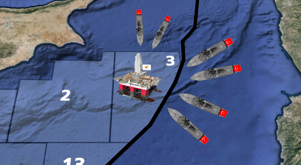 Σκηνικό έντασης στήνει και σήμερα η Άγκυρα στην περιοχή του Τεμαχίου Τρία, της Αποκλειστικής Οικονομικής Ζώνης της Κυπριακής Δημοκρατίας. Δύο πυραυλάκατοι, δύο φρεγάτες, μία κορβέτα και ένα πετρελαιοφόρο πλέουν και σήμερα απέναντι απο το πλωτό γεωτρύπανο Saipem 12000, της ιταλικής εταιρείας ΕΝΙ παρεμποδίζοντας την πορεία του προς τον γεωτρητικό στόχο “Σουπιά”