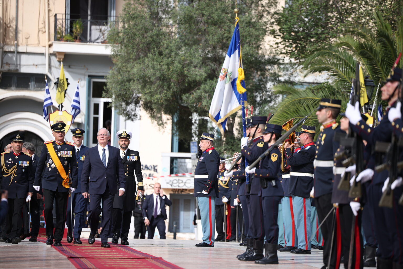 Το πρωί έγινε η έπαρση της σημαίας στον Λευκό Πύργο η οποία συνοδεύτηκε από 21 κανονιοβολισμούς.