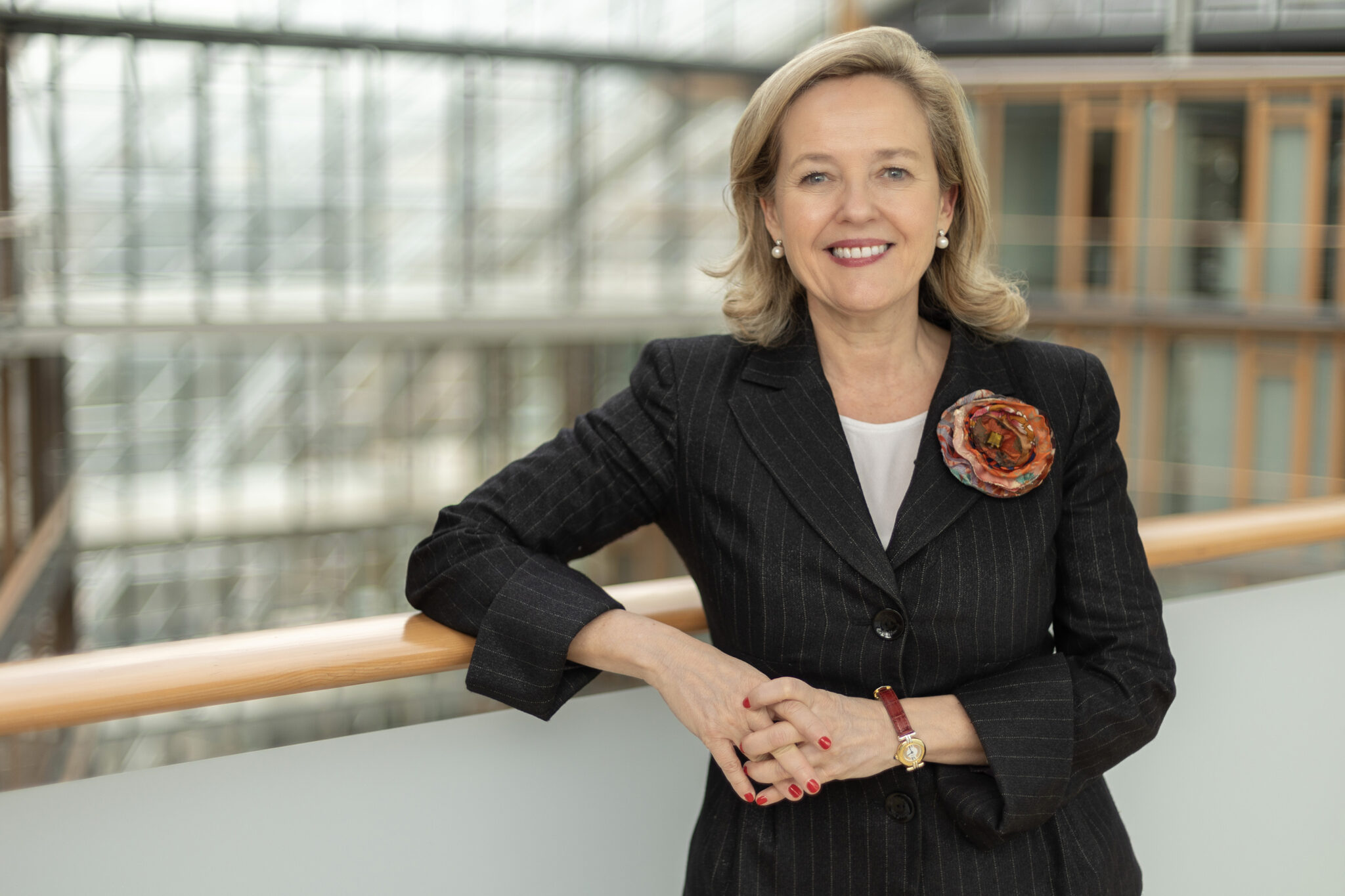 Όσον αφορά τις αντιδράσεις εναντίον της ατζέντας του Πράσινου Συμφώνου και τους ισχυρισμούς ηγετών ότι αυτή βλάπτει την ευρωπαϊκή ανταγωνιστικότητα, καθώς και τη δυσκολία που αναμένεται στο να συμφωνήσουν στη Σύνοδο Κορυφής της ΕΕ στα τέλη Οκτωβρίου για τους στόχους εκπομπών για το 2040, ενόψει και του COP30 στο Μπελέμ της Βραζιλίας, η Καλβίνιο εξήγησε: «Είναι προφανές για την Ευρώπη, ότι πρέπει να εντατικοποιήσουμε την πράσινη μετάβαση. Δεν είναι μόνο θέμα βιώσιμου μέλλοντος. Είναι θέμα ανταγωνιστικότητας, χαμηλότερων τιμών ενέργειας, περισσότερης ασφάλειας και στρατηγικής αυτονομίας. Γι’ αυτό στην ΕΤΕπ έχουμε ως πρώτη προτεραιότητα να εδραιώσουμε τον ρόλο μας ως κλιματική τράπεζα. Θα συζητήσουμε με το Διοικητικό μας Συμβούλιο τη δεύτερη φάση του οδικού χάρτη της κλιματικής τράπεζας, 2026-2030».