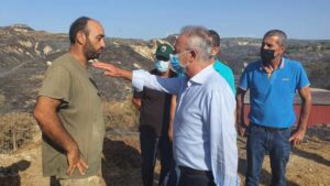 Είπε ακόμη πως δεν επιθυμεί να καταδικάσει τον οποιοδήποτε είτε αυτός είναι γεωργός είτε αυτός είναι κυνηγός ή τον οποιοδήποτε.Οι αρμόδιες αρχές συμπλήρωσε, θα κάνουν τις έρευνες τους, σημειώνοντας ωστόσο πως αν υπήρξε κακή πρόθεση από οποιονδήποτε ο νόμος να είναι αυστηρότατος. Από εκεί και πέρα τόνισε, “πιστεύω στον Κύπριο, πιστεύω στις δυνάμεις μας θα ξαναπρασινίσουμε τον τόπο μας και θα ήμαστε δίπλα στους κατοίκους της περιοχής”, κατέληξε ο Πρόεδρος του ΔΗΣΥ.Εξάλλου, σε δηλώσεις του ο πρόεδρος του Κ.Σ. Γιόλου Σταύρος Βραχνός ευχαρίστησε τον κ. Νεοφύτου για την επίσκεψη και είπε πως ο Πρόεδρος του ΔΗΣΥ θα συμβάλει στη στήριξη των πληγέντων κατοίκων της περιοχής στο μέτρο των δυνατοτήτων της κυβέρνησης. Επίσης ο κοινοτάρχης Σίμου Ανδρέα Παπαγαπίου εξέφρασε τις ευχαριστίες του προς τον Πρόεδρο του ΔΗΣΥ αλλά και τον Υπουργό Γεωργίας Κώστα Καδή με τον οποίον, όπως είπε, είχαν τακτική επικοινωνία. Ακόμη ο Κυριάκος Ανδρέου, κτηνοτρόφος, που έχει πληγεί στην περιοχή, επέρριψε ευθύνες σε “κάποιους ανεύθυνους κυνηγούς”, λέγοντας πως τα ίδια είχαν συμβεί και πριν τρία χρόνια. Είναι, σημείωσε, κρίμα γιατί όλοι μας είμαστε βιοπαλαιστές και εργαζόμαστε για να βγάλουμε ένα μεροκάματο.