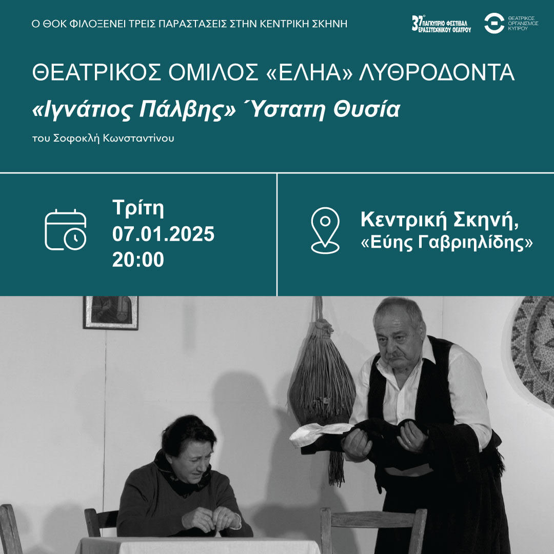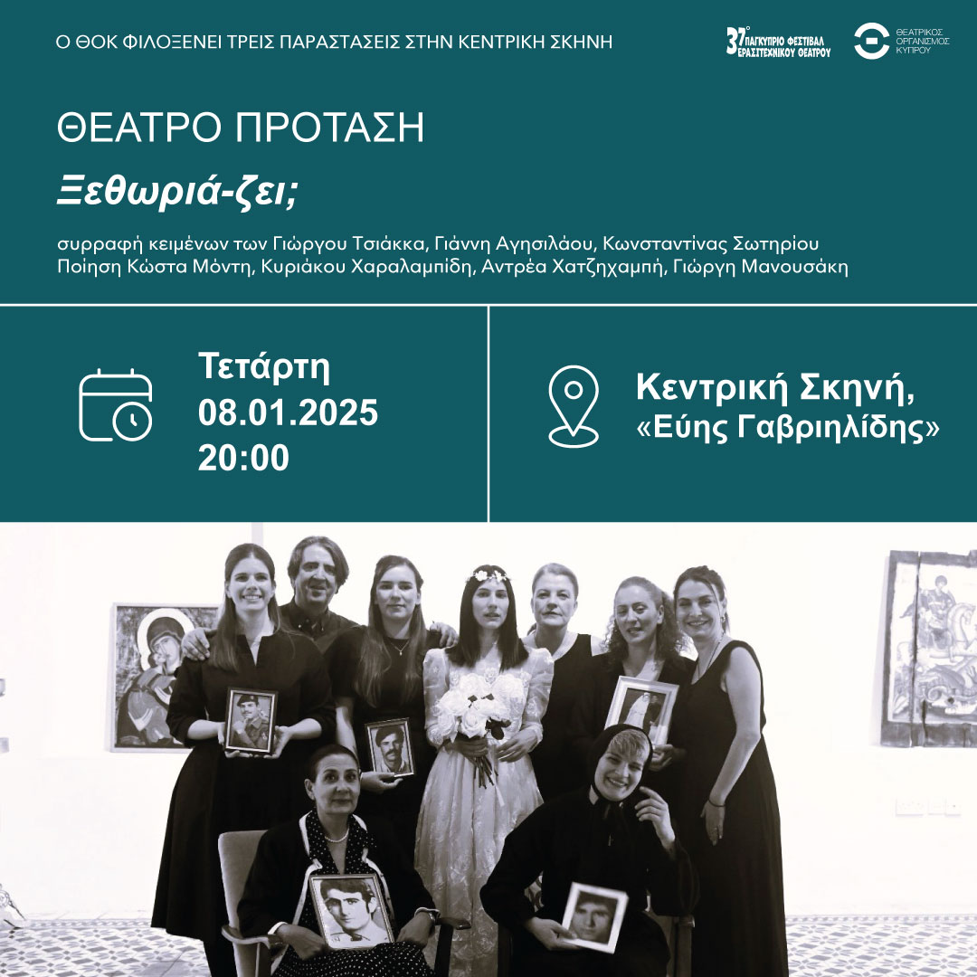O Θεατρικός Οργανισμός Κύπρου συγχαίρει όλους τους συμμετέχοντες στο 37ο Παγκύπριο Φεστιβάλ Ερασιτεχνικού Θεάτρου και τιμώντας τους, προσκαλεί το κοινό, να απολαύσει δωρεάν τις τρεις παραστάσεις, που επιλέγηκαν από την Καλλιτεχνική Επιτροπή του Φεστιβάλ για να παρουσιαστούν στην Κεντρική Σκηνή «Εύης Γαβριηλίδης», στο Θέατρο ΘΟΚ, στις 7, 8 και 9 Ιανουαρίου 2025.