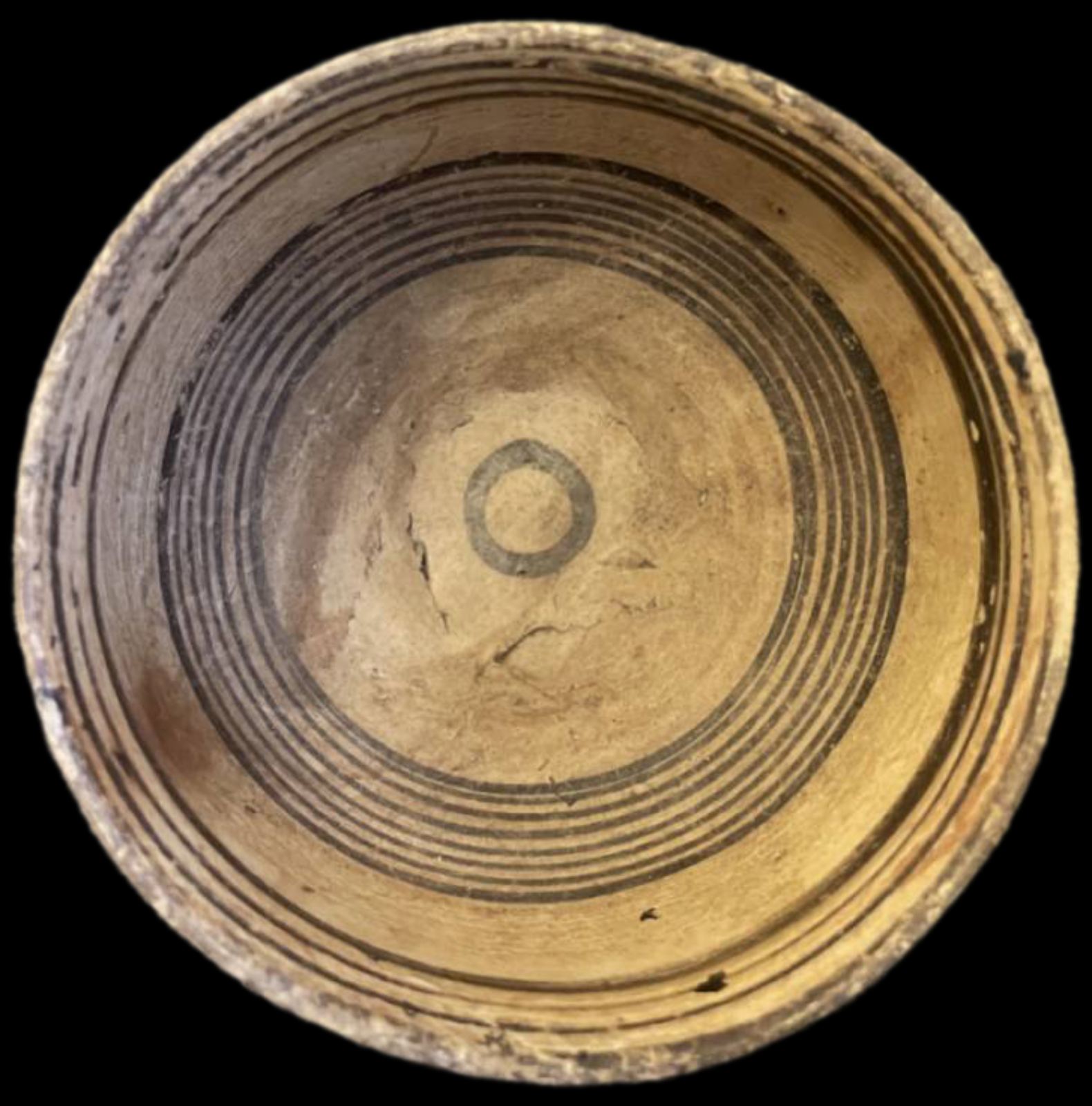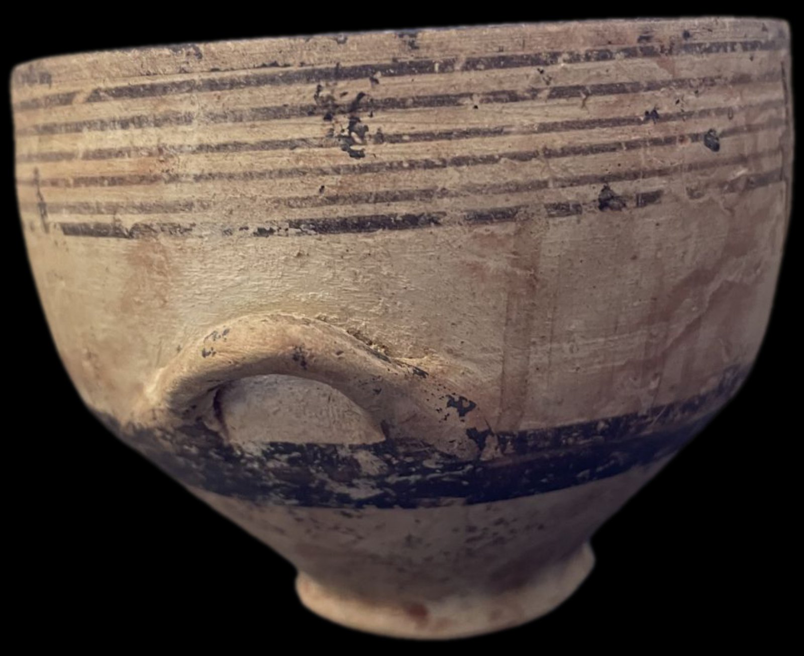 Πρόκειται για μία Κύλικα της Δίχρωμης κεραμικής, της Κυπρο-Γεωμετρικής ΙΙΙ περιόδου (900-750 π.Χ.) / Κυπρο-Αρχαϊκής Ι περιόδου (750-600 π.Χ.), με δύο οριζόντιες λαβές και διακόσμηση στο εξωτερικό και εσωτερικό μέρος που αποτελείται από μελανές ταινίες διαφορετικού πάχους.