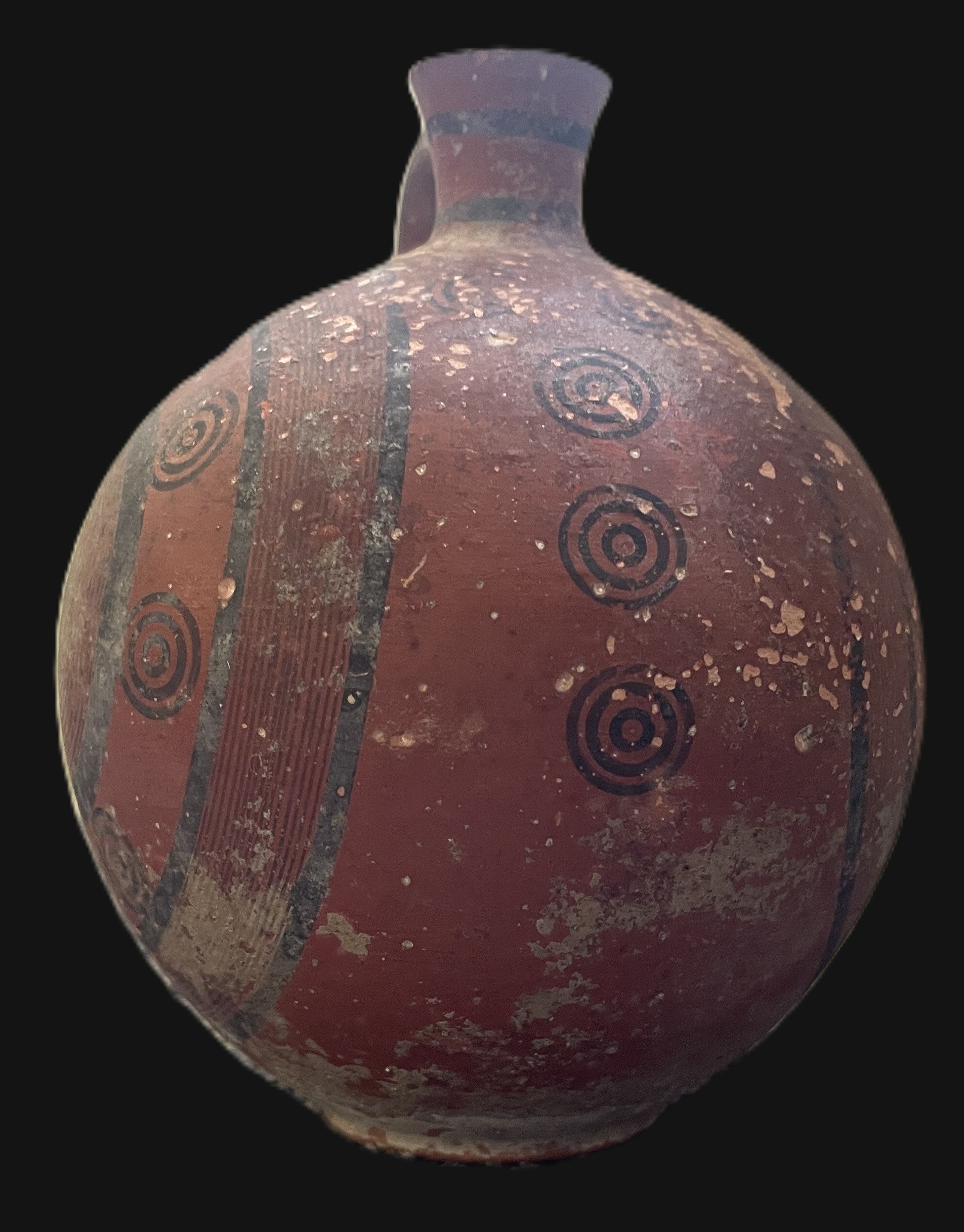 Πρόκειται για Πρόχους του τύπου Μελανού επί Ερυθρού ΙΙΙ (ΙV) της Κυπρο-Αρχαϊκής Ι περιόδου (750 – 600 π.Χ.) με σφαιρικό σώμα, κοντό κυλινδρικό λαιμό, ελαφρώς υπερυψωμένη κάθετη λαβή από τον λαιμό στον ώμο και διακόσμηση μαύρου χρώματος σε κοκκινωπό στιλπνό φόντο που αποτελείται από ομάδες ομόκεντρων κύκλων σε κάθε πλευρά και ταινίες γύρω από τον λαιμό. Το χείλος δεν σώζεται.