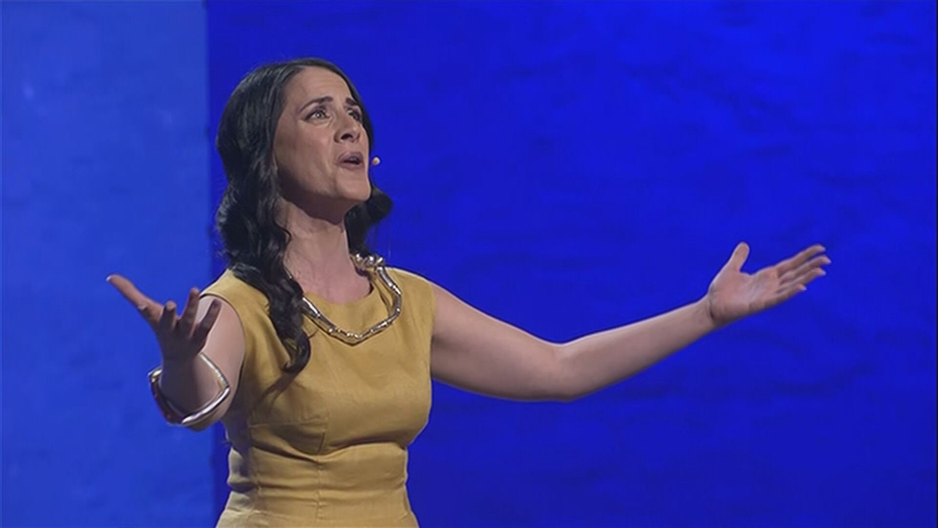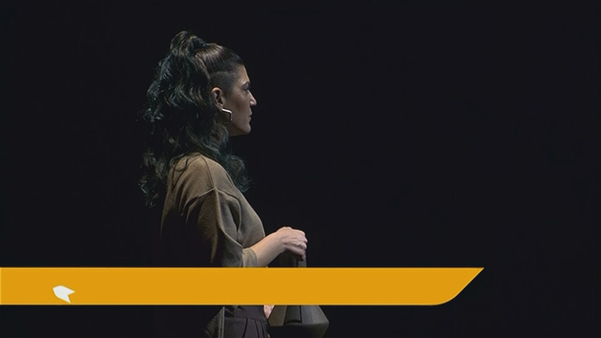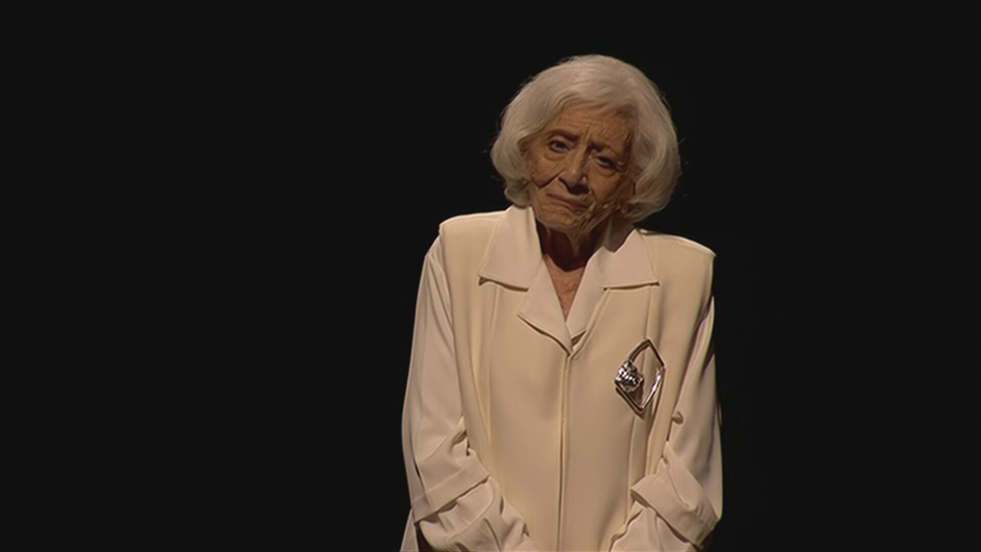 Η Δέσποινα Μπεμπεδέλη απαγγέλλει το ποίημα «Ε άδρωπε» του Κυριάκου Καρνέρα.