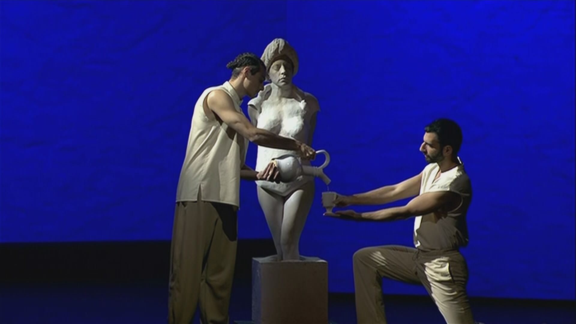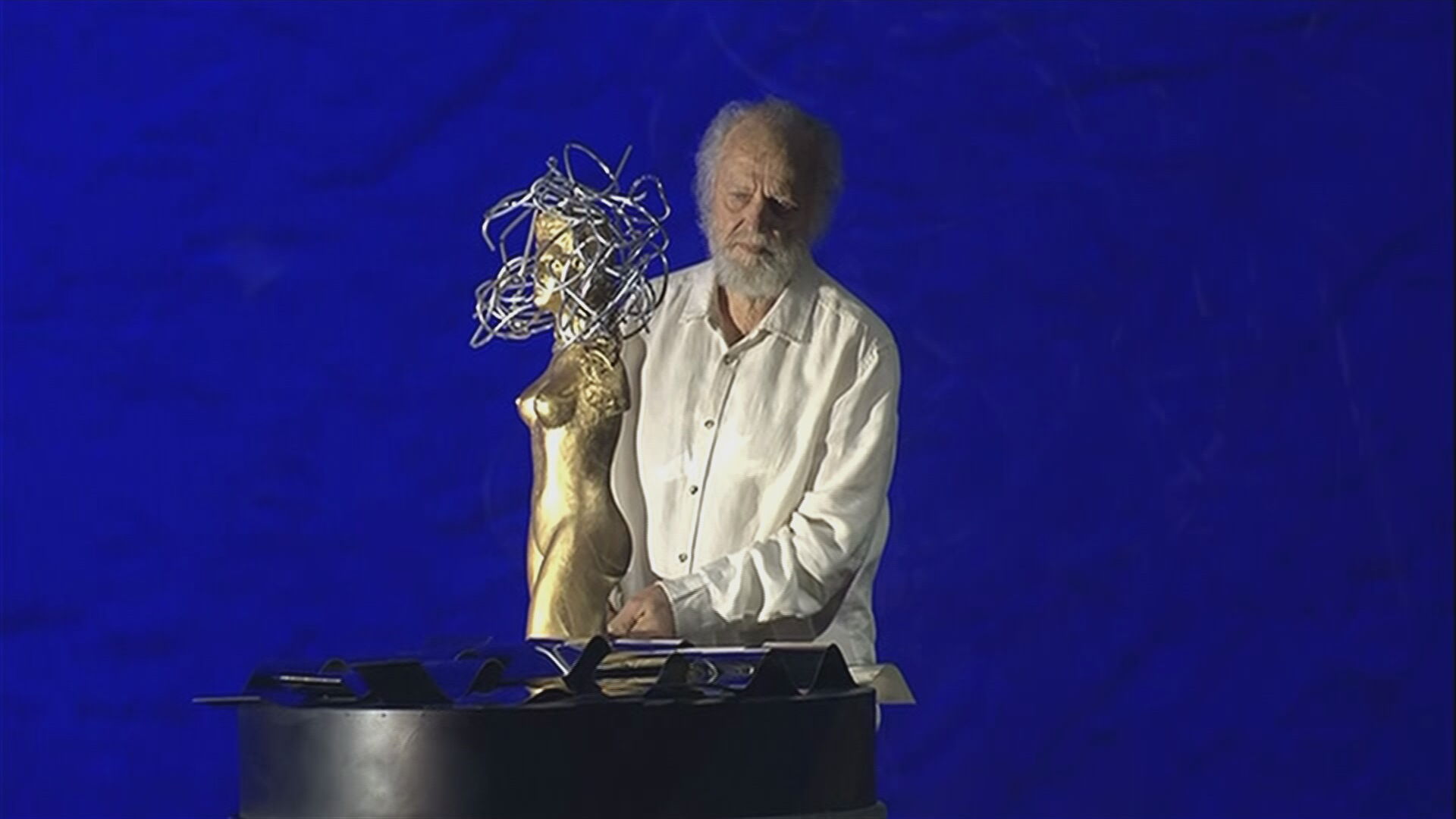 Υπό την απαγγελία της «Κυπριακή Ραψωδίας» του Τεύκρου Ανθία και υπό την ηχητική υπόκρουση της Συμφωνικής, ο γλύπτης Νίκος Κουρούσιης παρουσίαζει το γλυπτό του το οποίο αναπαριστά την θεά Αφροδίτη.