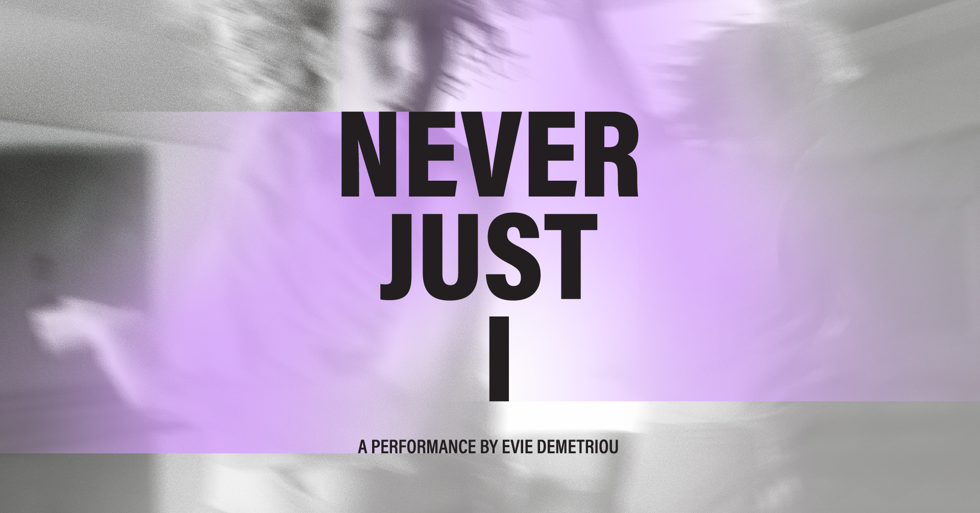 Το NEVER JUST I είναι ένα ‘τολμηρό’ σόλο έργο της Εύης Δημητρίου, που φέρνει στη σκηνή μια βαθιά προσωπική αφήγηση μέσα από την κίνηση, τον λόγο και το συναίσθημα. Εστιάζοντας στους ρόλους της μητρότητας και της κόρης, η παράσταση ξεδιπλώνει τις αόρατες πτυχές της γυναικείας εμπειρίας – με ευαισθησία, χιούμορ και τόλμη. Πρόκειται για έναν χορογραφικό στοχασμό πάνω στη μητρότητα ως κοινωνική πρακτική και πράξη συνύπαρξης. Με εξομολογητικό ύφος, η παράσταση φαντάζεται νέους τρόπους ύπαρξης και σχέσεων, καλώντας το κοινό να ονειρευτεί έναν κόσμο όπου το «εμείς» υπερτερεί του «εγώ» και όπου το όνειρο γίνεται καταλύτης αλλαγής.