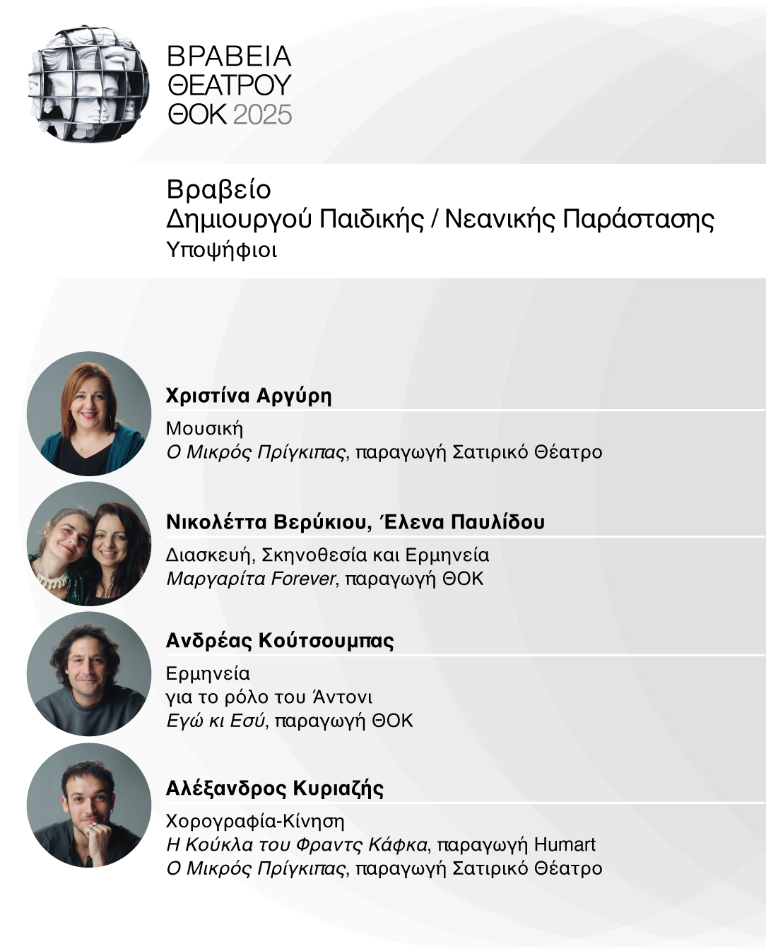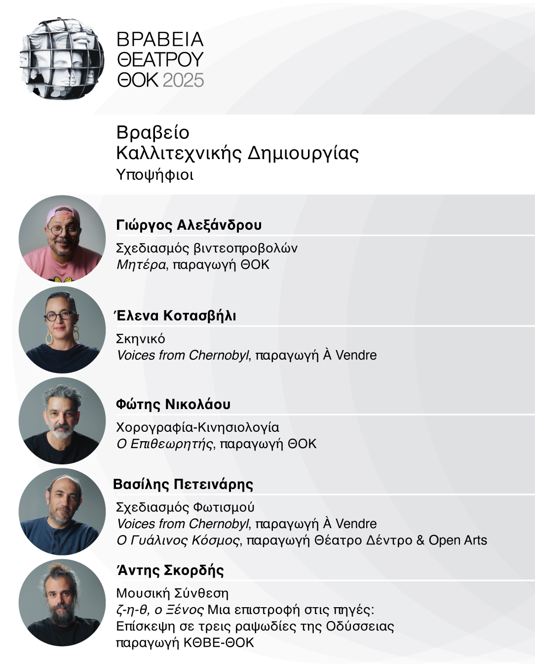 Υποψηφιότητες Βραβείων Θεάτρου ΘΟΚ για το έτος 2025