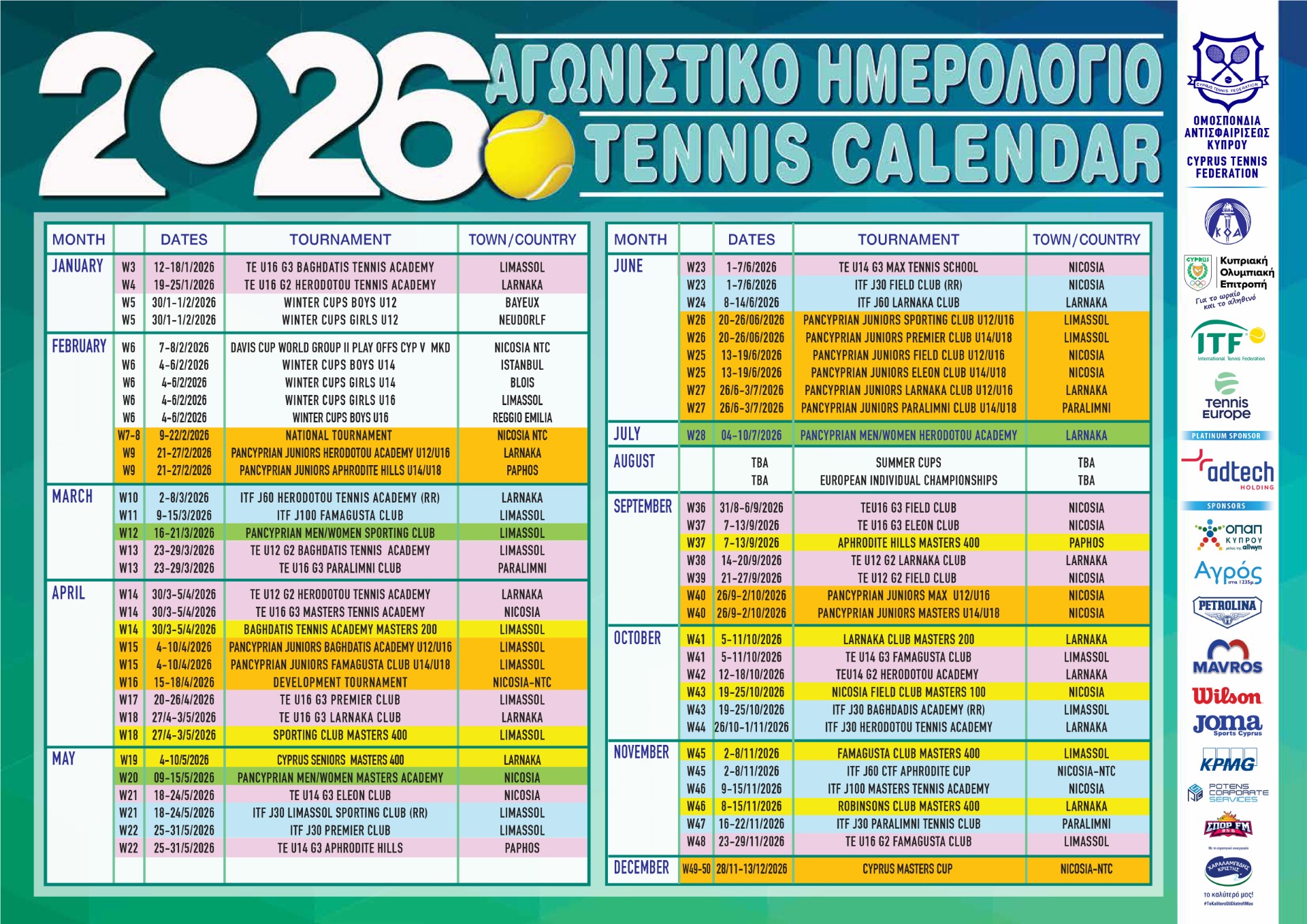 Η Ομοσπονδία Αντισφαίρισης Κύπρου (ΟΑΚ) ανακοίνωσε το «Αγωνιστικό Ημερολόγιο 2026» για τις εγχώριες και διεθνείς διοργανώσεις. Το αγωνιστικό καλεντάρι καταρτίστηκε μετά από εισήγηση της Τεχνικής Επιτροπής και εγκρίθηκε από την ολομέλεια του Διοικητικού Συμβουλίου της ΟΑΚ.