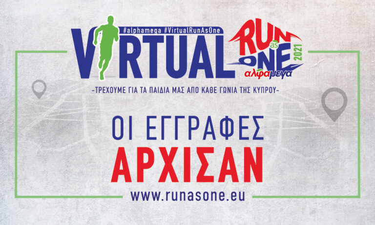 Το πιο fun running event της Κύπρου επιστρέφει για δεύτερη χρονιά στη virtual μορφή του, που μας επιτρέπει να τρέξουμε από κάθε γωνιά της Κύπρου ! Τρέχουμε για τα παιδιά μας στο ΑΛΦΑΜΕΓΑ VIRTUAL RUN AS ONE 2021, από 22 μέχρι 31 Οκτωβρίου απ’ όποιο μέρος της Κύπρου κι αν βρισκόμαστε!Οι εγγραφές είναι διαθέσιμες για όλους τους δρόμους του αγώνα, στην ιστοσελίδα της διοργάνωσης www.runasone.eu. Μέσα από μια απλή διαδικασία, οι ενδιαφερόμενοι δρομείς μπορούν να μεταφερθούν στην πλατφόρμα εγγραφών, να επιλέξουν τον δρόμο της προτίμησής τους και να δηλώσουν συμμετοχή.