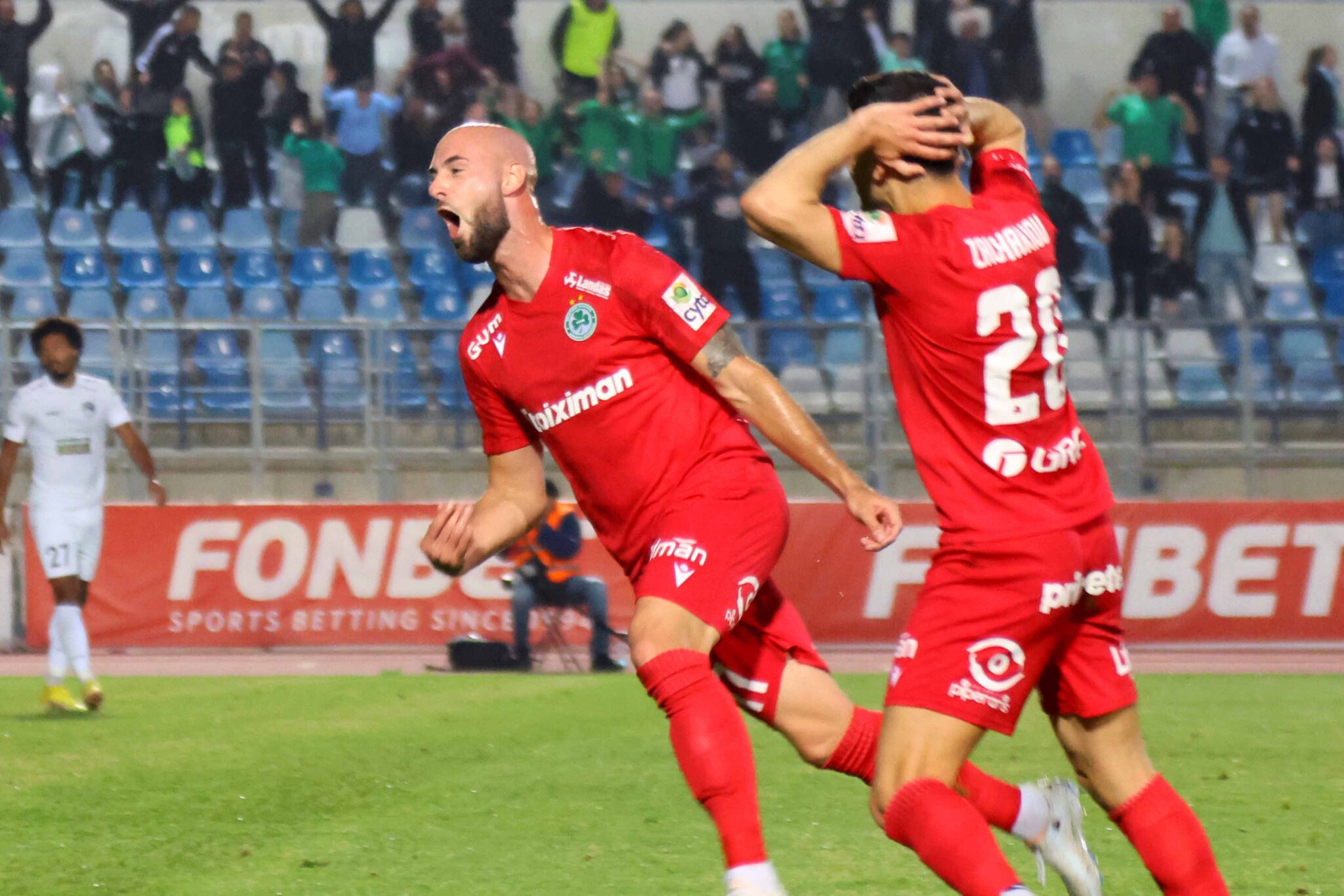Στην συνέχεια, οι γηπεδούχοι είχαν την πρωτοβουλία των κινήσεων, με την ομάδα της Λευκωσίας να επικεντρώνεται στα αμυντικά της καθήκοντα και να απειλεί στην κόντρα. Τακτική που απόφερε καρπούς, καθώς το «τριφύλλι» άνοιξε το σκορ στο 35ο λεπτό, με τον Λέζιακς να κάνει το σουτ στην κίνηση και να… καρφώνει την μπάλα στα δίχτυα του Ίβουσιστς.