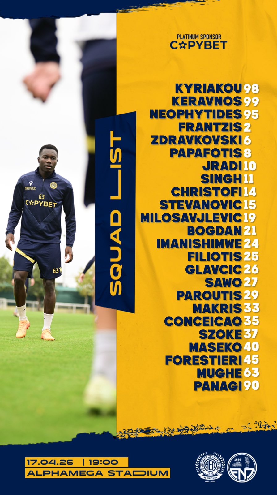Ο Ούγκο Μάρτινς δε μπορεί να υπολογίζει τους Οτσόα και Νεοφύτου που έμειναν εκτός αποστολής. Ο Κύπριος άσος ένιωσε σφίξιμο στο ισχίο. Όλοι άλλοι είναι κανονικά διαθέσιμοι.