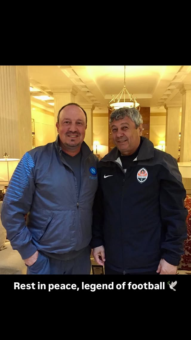 «Αναπαύσου εν ειρήνη, θρύλε του ποδοσφαίρου», ανέφερε το μήνυμα του Μπενίτεθ, που συνοδευόταν και από μια φωτογραφία του με τον αείμνηστο Λουτσέσκου, από όταν ο ίδιος προπονούσε τη Νάπολι και ο εκείνος την Σαχτάρ Ντόνετσκ.