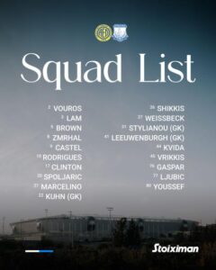 Οι «κυανόλευκοι» μέσω ανάρτησης τους στα Μέσα Κοινωνικής Δικτύωσης, έκαναν γνωστές τις επιλογές του Σωφρόνη Αυγουστή, όσον αφορά στην αποστολή. Εκτός έμεινε ο Λάζαρ Μάρκοβιτς, ο οποίος παρότι είχε αγωνιστεί στη νίκη επί της Ομόνοιας, ένιωσε ξανά ενοχλήσεις.