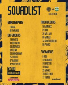 Η ομάδα της Λεμεσού ενημέρωσε επίσης για τις επιλογές του Κρις Κόλμαν αναφορικά με την αποστολή. Εκτός έμειναν οι Παπαφώτης, Λεσοβόι, Άμπραχαμ και Τρισκόφσκι.