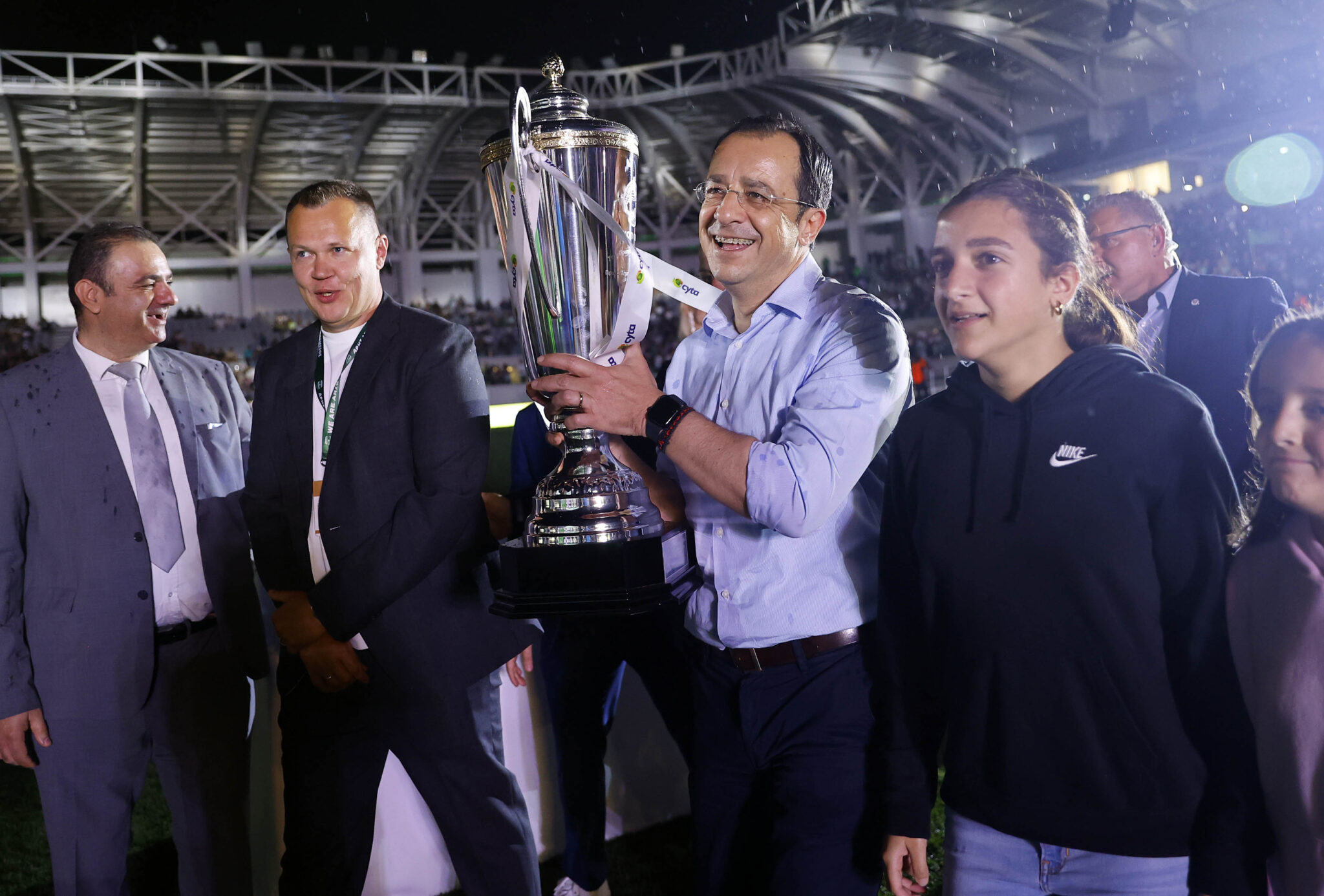 Στο «Άλφαμεγα Stadium» βρέθηκε σήμερα (28/05), ο Πρόεδρος της Δημοκρατίας, Νίκος Χριστοδουλίδης, για να κάνει την απονομή του πρωταθλήματος Cyta στον Άρη.