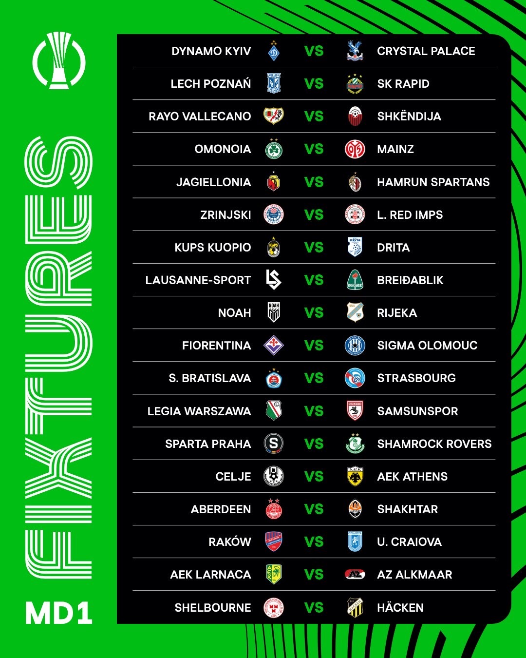 Από το πρόγραμμα της πρώτης αγωνιστικής ξεχωρίζει επίσης η αναμέτρηση της Ντιναμό Κιέβου κόντρα στην Κρίσταλ Πάλας στις 19:45, όπως και το ματς της Λεχ Πόζναν με τη Ραπίντ Βιέννης, εξίσου στις 19:45.
