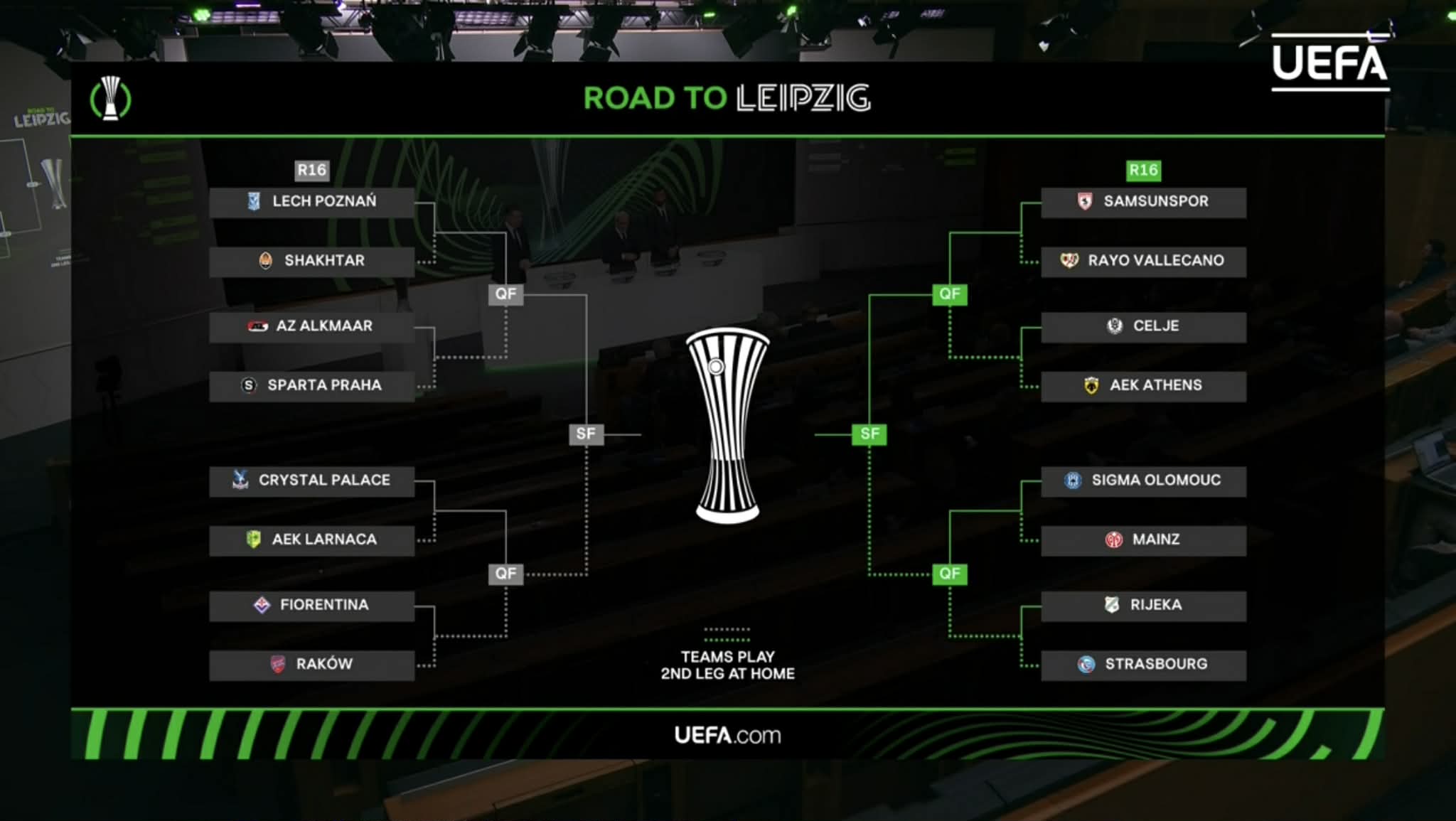 Παράλληλα, η ΑΕΚ έμαθε και τις διασταυρώσεις, έτσι σε περίπτωση που αποκλείσει την Κρίσταλ Πάλας, στην προημιτελική φάση θα αναμετρηθεί με τον νικητή του Φιορεντίνα-Ράκοφ.