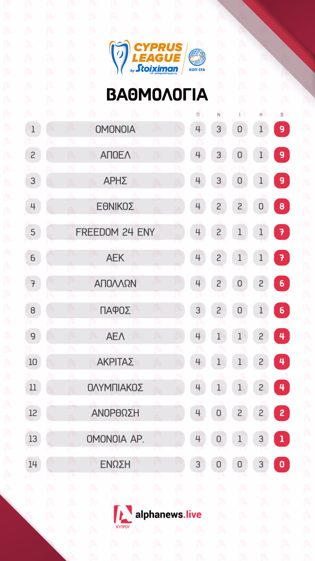 Απ’ εκεί και πέρα, παραμένει σταθερός ο ΑΠΟΕΛ, ενώ συνεχίζει να… παραπαίει η πληγωμένη Ανόρθωση. Απόλλωνας και Πάφος επιβεβαίωσαν τον τίτλο του φαβορί και πήραν επίσης σημαντικές νίκες κόντρα σε Ένωση και Ομόνοια Αρ. αντίστοιχα.