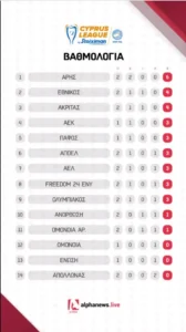 - 19:00 Ομόνοια – Ακρίτας (Cytavision Sports 1)