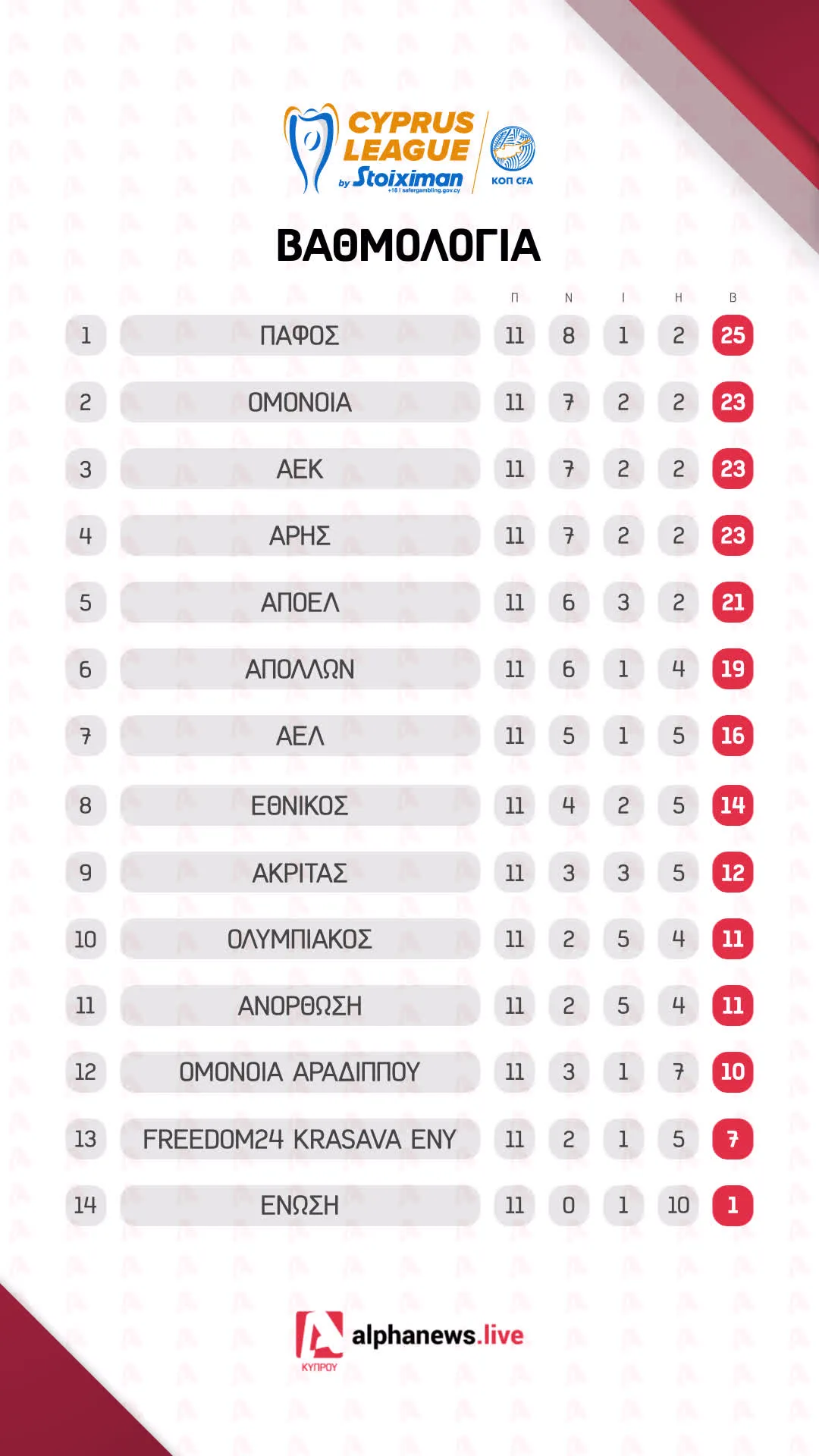 • 17:00 Freedom24 Krasava ΕΝΥ – Πάφος (Cytavision Sports 2)