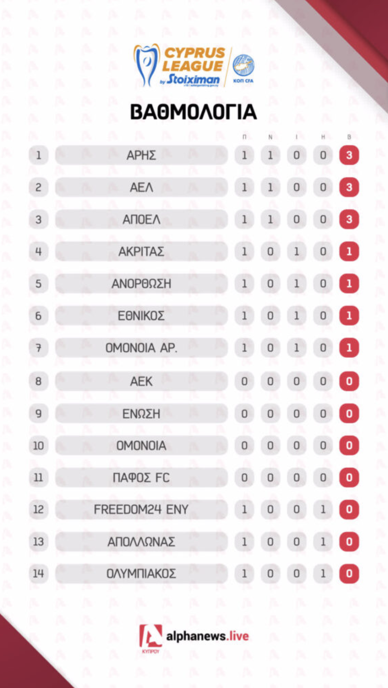 - 19:00 Εθνικός – Ομόνοια (Cytavision Sports 2)
